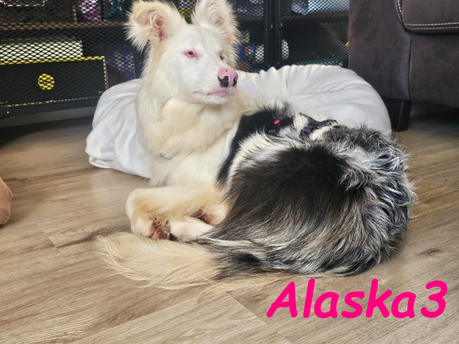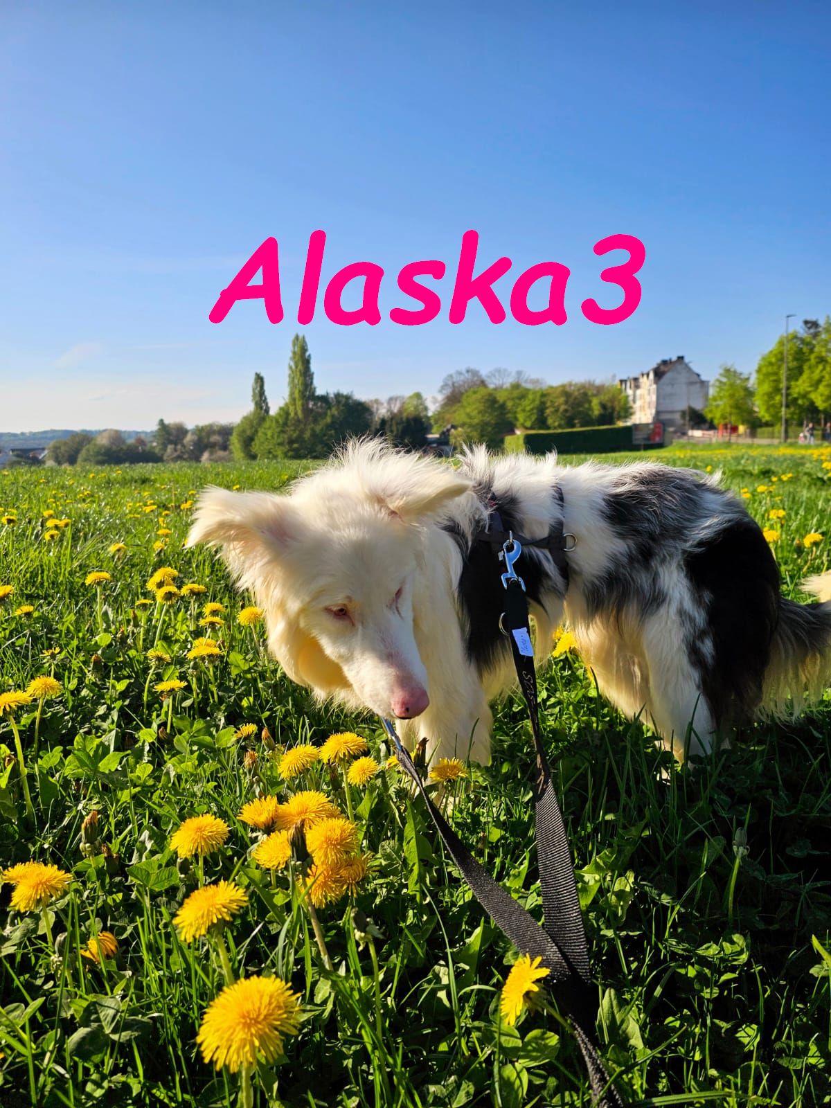 Alaska3 wurde verlassen auf einem Feld gefunden, vermutlich von einem Züchter ausgesetzt, der sich nicht mehr um sie kümmern wollte. Alaska3 ist zu 80 % taub und blind, was sie jedoch nicht daran hindert, die Welt um sich herum auf ihre eigene, einzigartige Weise zu erleben. Sie ist ein wundervoller, anhänglicher Hund, der es liebt, in der Nähe von Menschen und anderen Hunden zu sein. Ihre sanfte und freundliche Art macht sie zu einer perfekten Gefährtin für alle, die ihr ein liebevolles Zuhause bieten möchten.