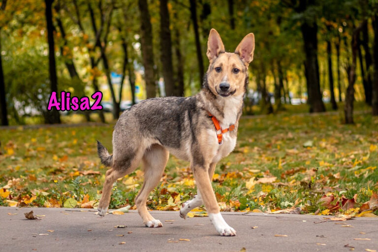 Sie ist sehr neugierig auf die Welt um sie herum, sie nimmt alles sofort auf, sie lernt alles Neue sehr schnell, mit großer Freude und Interesse. Alisa ist klug, freundlich, aufgeschlossen und schlagfertig. Sie liebt es, mit verschiedenen Hundespielzeugen zu spielen, und sie liebt es, zu laufen und zu rennen.