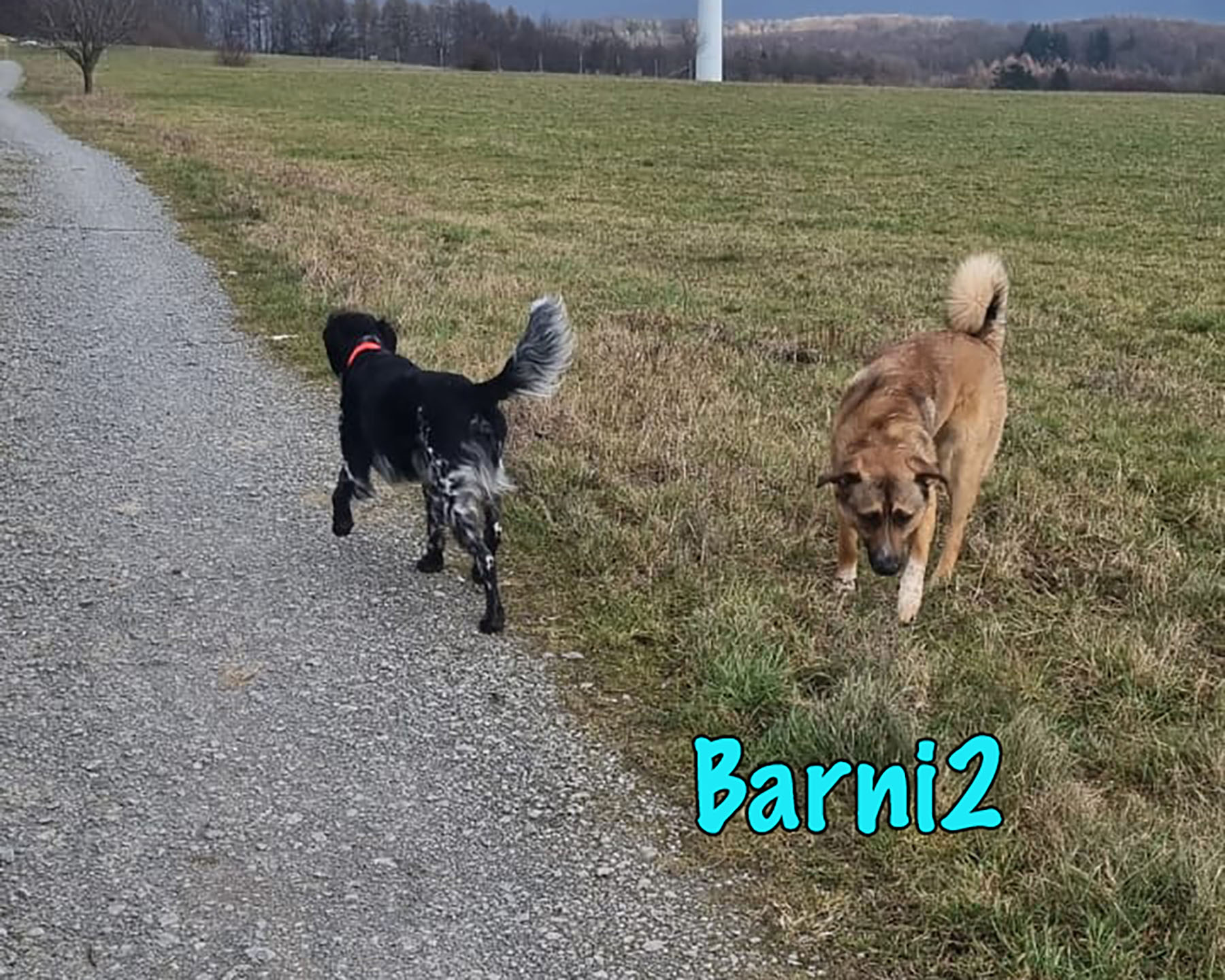 Der ruhige und aufmerksame Junge liebt es, mit anderen Hunden zu spielen. Barni lebt in einer großen Gruppe von Hunden. Er liebt Aufmerksamkeit, liebt es, wenn Menschen ihn streicheln und kraulen. Aufmerksamkeit und Zuneigung des Menschen ist ihm sehr wichtig. Er ist ein aktives, neugieriges und verspieltes Kind. Er spielt gerne mit verschiedenen Hundespielzeuge, ist freundlich und offen. Barni ist sehr schlagfertig und lernt sehr schnell.