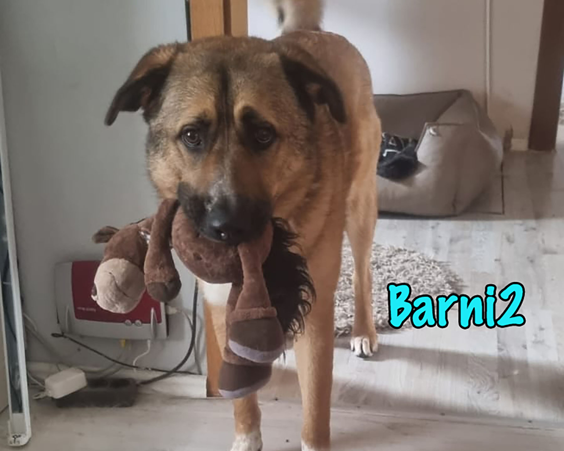 Im März 2022 kam Barni2 nach Deutschland und lebte sich rech schnell ein. Barni2 ist zuverlässig stubenrein und bleibt auch problemlos ein paar Stunden am Tag alleine ohne etwas anzustellen. Wir besuchen mit ihm schon länger regelmäßig eine gute Hundeschule und daher kennt und befolgt Barni2 die meisten Grundkommandos. Er kann auch stur sein, aber wenn er mit liebevoller Konsequenz korrigiert wird dann klappt das.