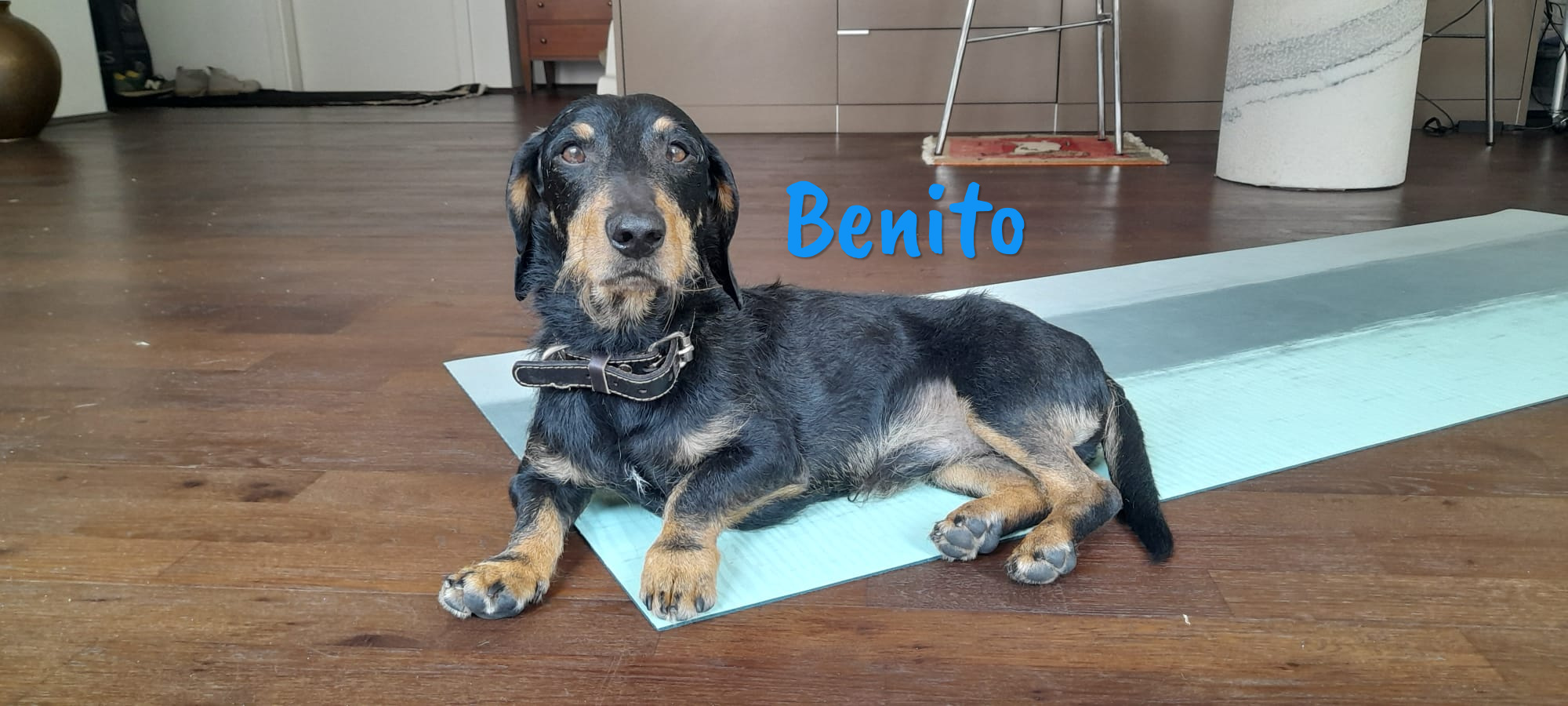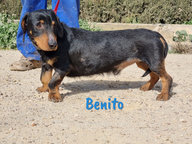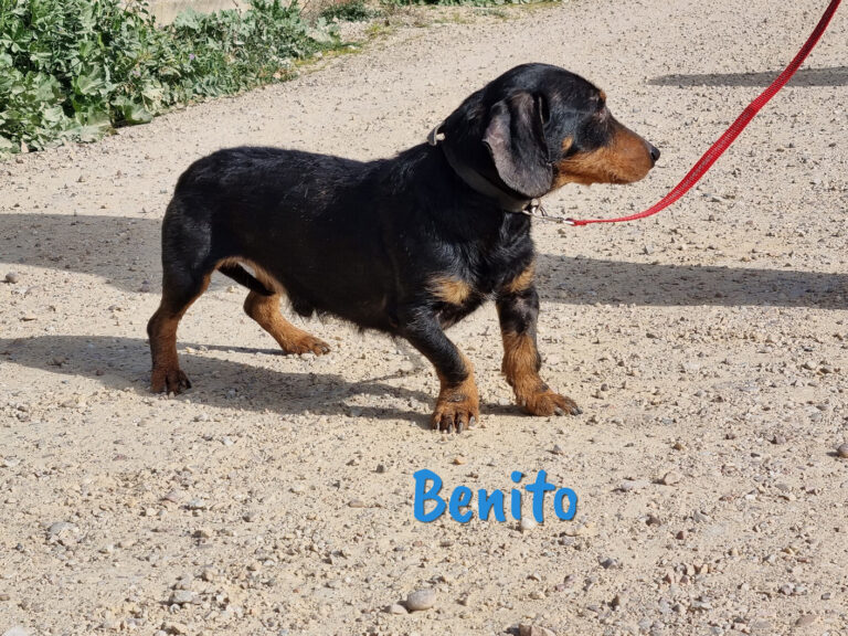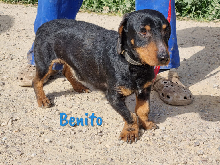 Er hat eine angeborene Fehlstellung der hinteren Pfoten, die etwas kürzer als die vorderen Pfoten sind. Das beeinträchtigt ihn aber nicht und verursacht ihm auch keine Schmerzen. Für diesen hübschen Dackel wünschen wir uns liebevolle Menschen, die auf kleine, agile Hunde stehen und gern unterwegs sind, denn wir sind uns sicher, dass Benito noch viel erleben möchte und keinesfalls schon in Rente ist.