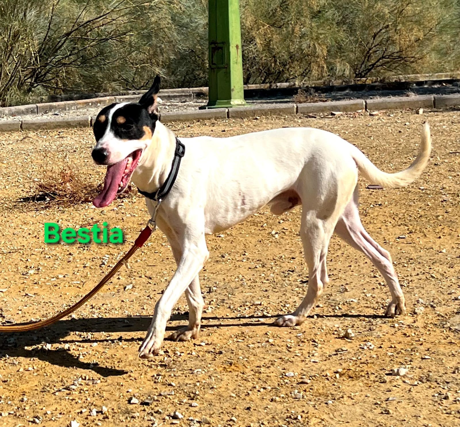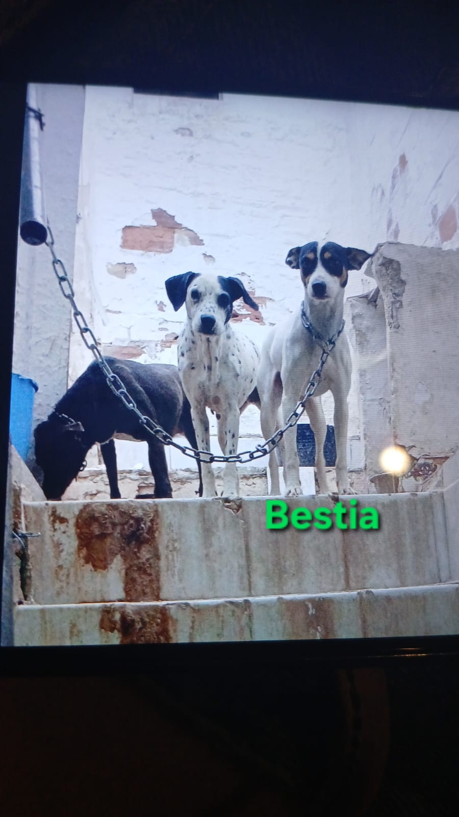 Bestia wurde aus dem sogenannten „Haus des Schreckens“ gerettet, wo die Hunde unter völlig verwahrlosten und unhygienischen Bedingungen in einem Patio gehalten wurden. Bestia war sogar angebunden, vermutlich um weitere Würfe zu verhindern, da viele unkastrierte Hündinnen um ihn herum waren.