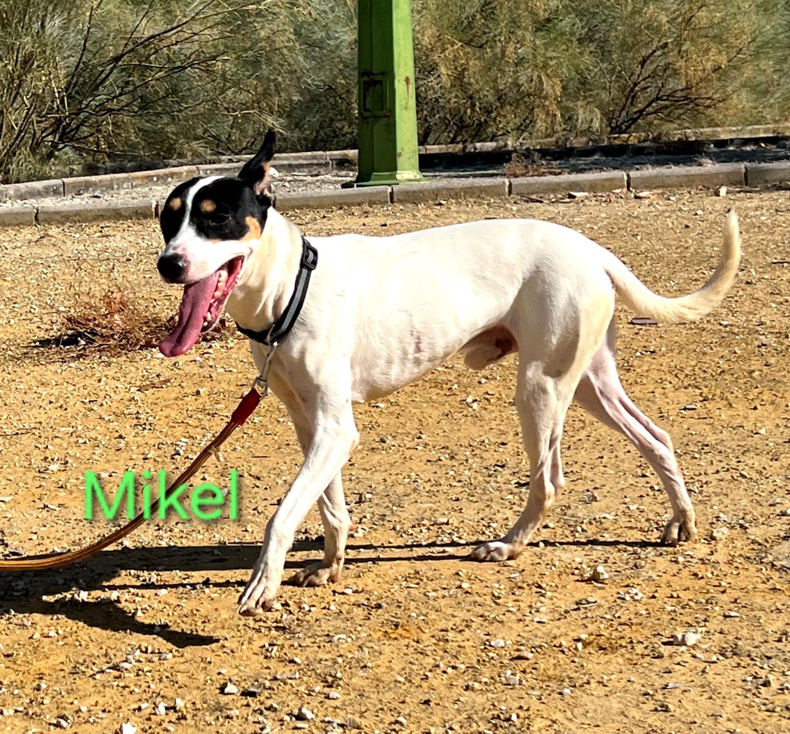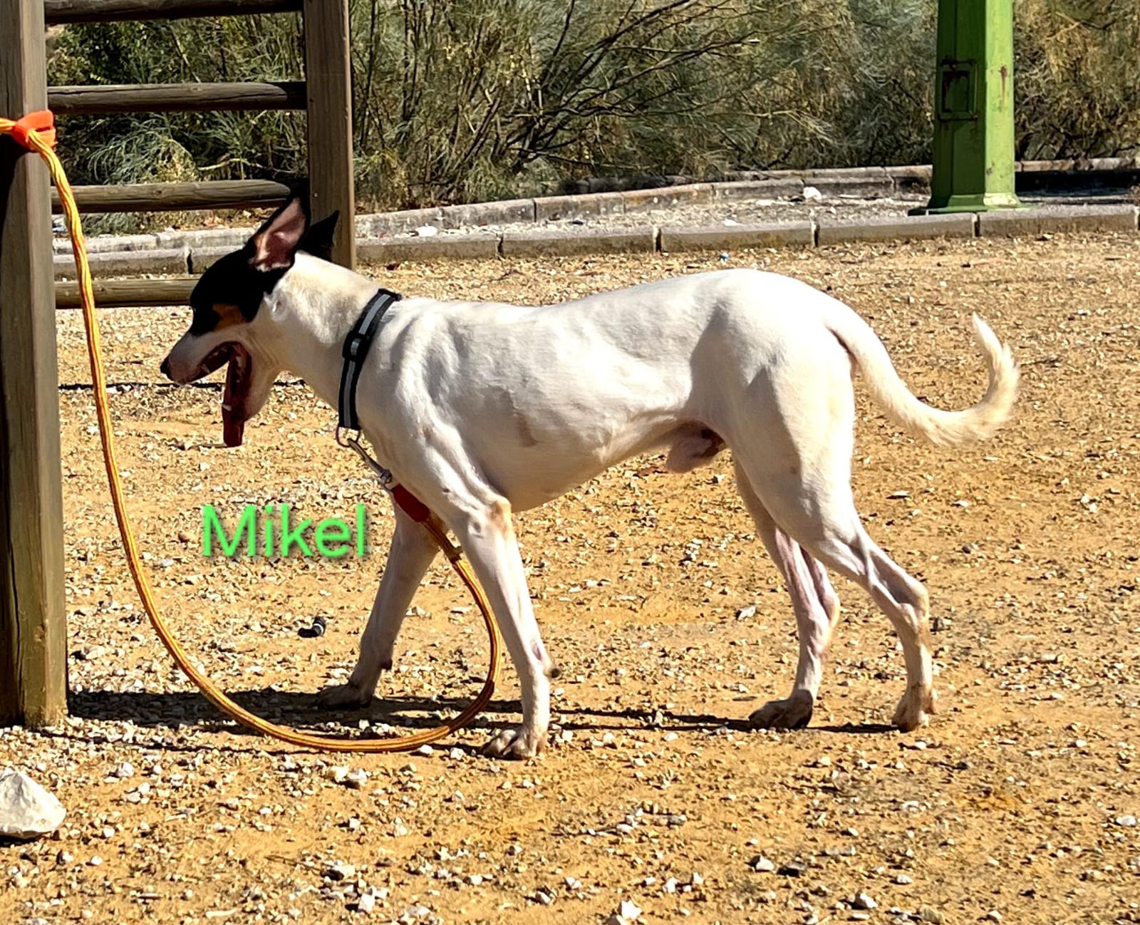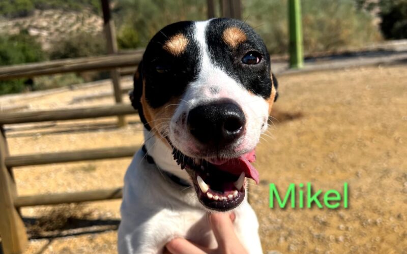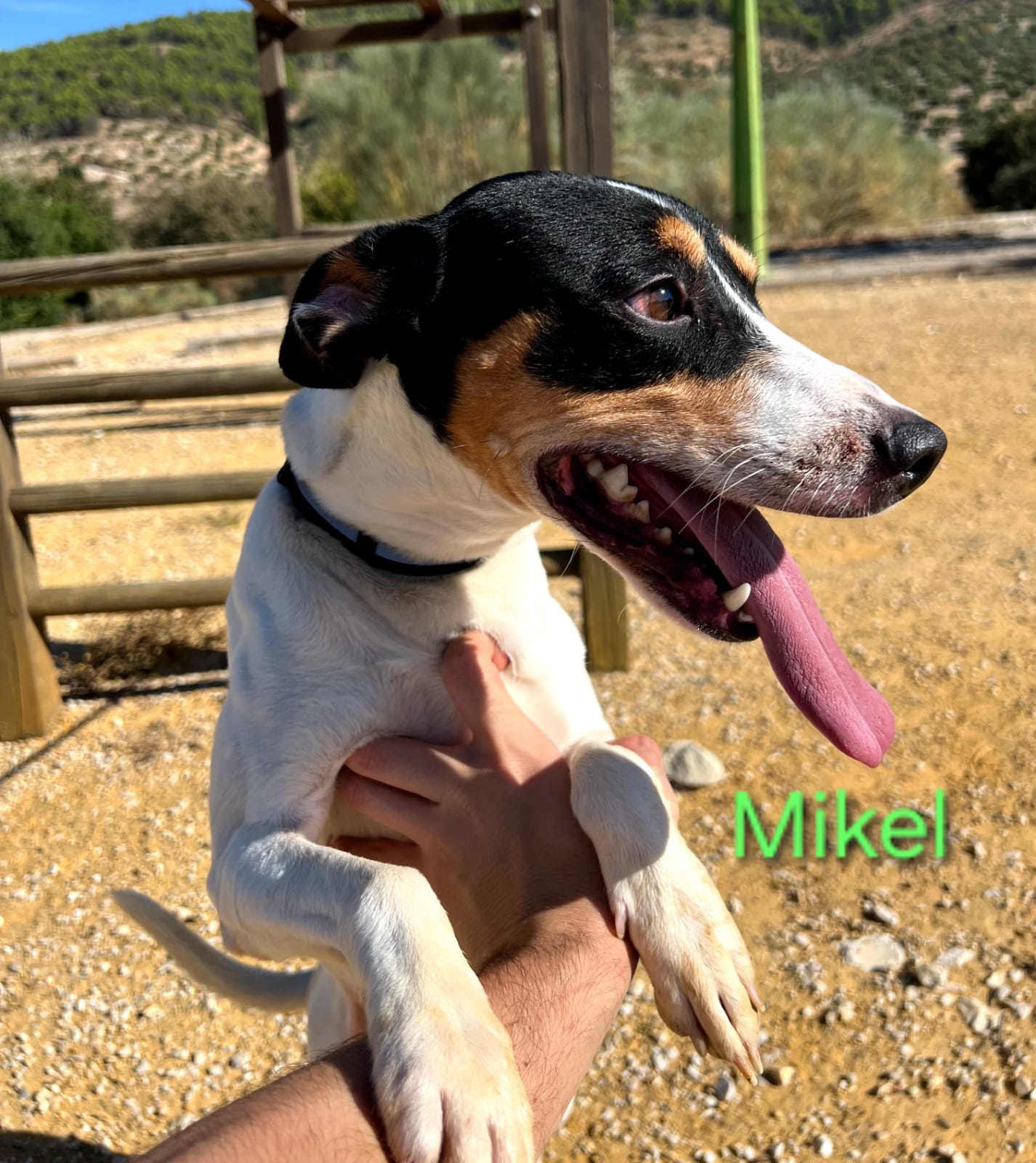 Mikel kam sehr verängstigt zu uns, sein früheres Leben war alles andere als leicht. Von allen Hunden, die aus jenem Haus gerettet wurden, hat er sich am meisten verändert. Seine Entwicklung verlief schnell und positiv, heute ist er ein ganz neuer Hund: vertrauensvoll, gutmütig, liebevoll, freundlich, aktiv und verspielt. Er ist sozial mit anderen Hunden, da er immer inmitten vieler Artgenossen gelebt hat.