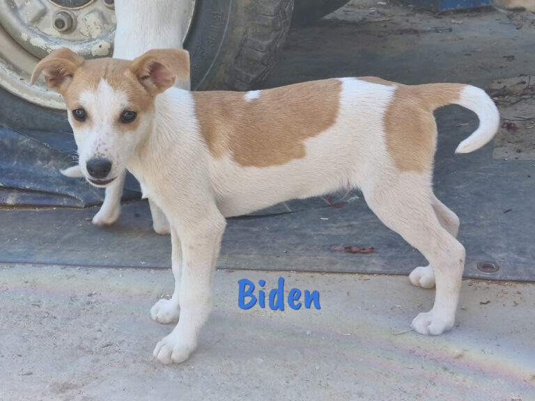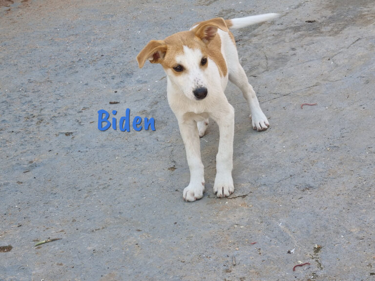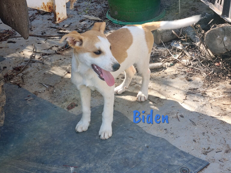 Biden und seine Geschwister Obama, Carter, La Haya und La Rota sind die Welpen von Hillary2. Sie brachte sie in der Nähe eines Hauses auf die Welt und machte den Hausbesitzer auf sich aufmerksam, sodass die Kleinen von ihm einen geschützten Platz am Haus bekamen. Dort leben sie immer noch, bis sie bald zu Alicia und Alberto ins Shelter ziehen können.