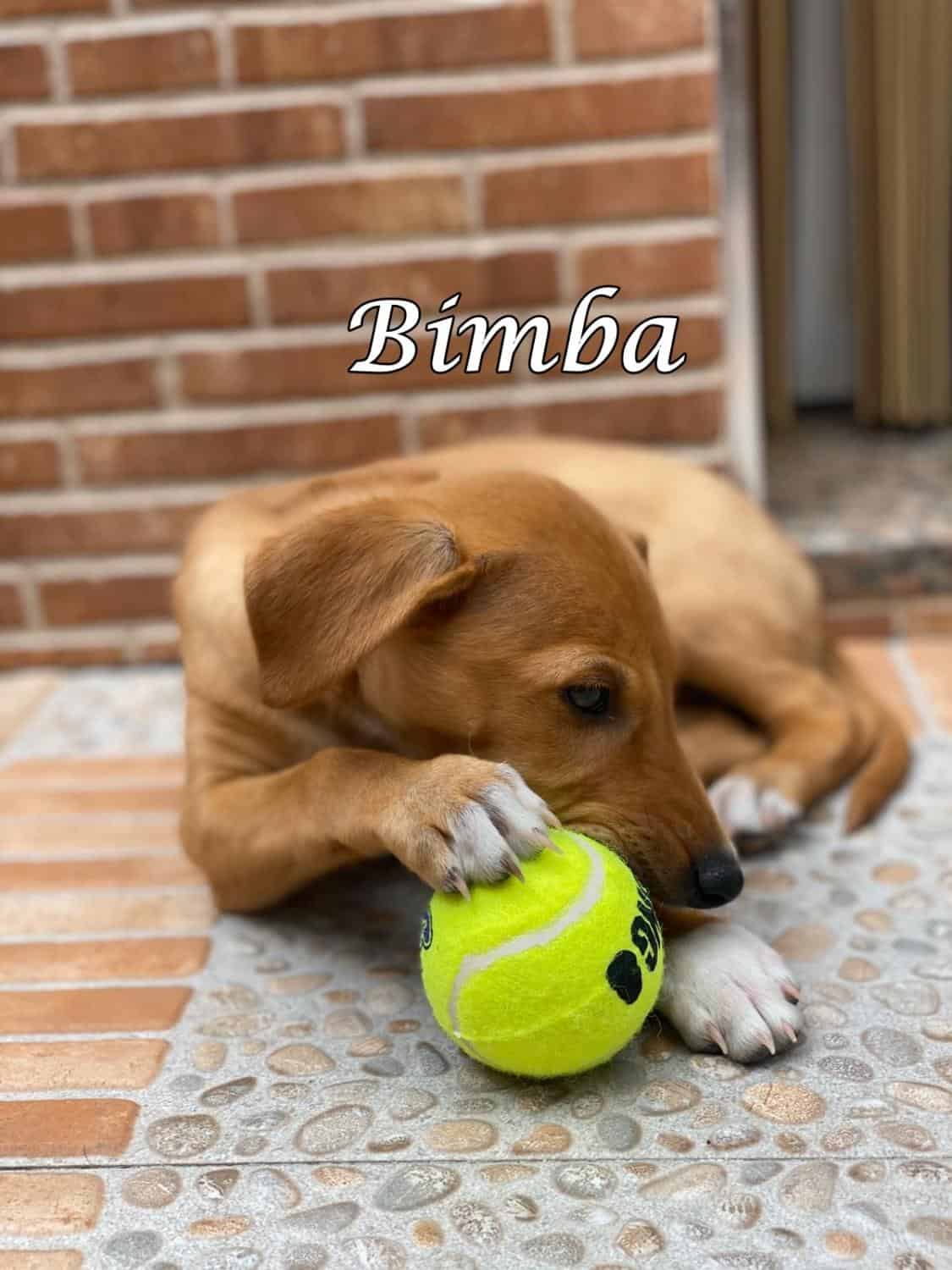 Bimba lebt in einer Pflegestelle und zeigt sich verspielt, verschmust und, für ihr Alter, entspannt. Wir schätzen, dass sie nicht sehr groß werden wird und dass womöglich Podencogenen in ihr sind.