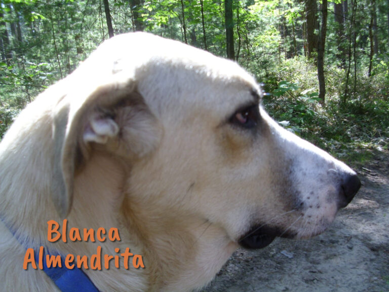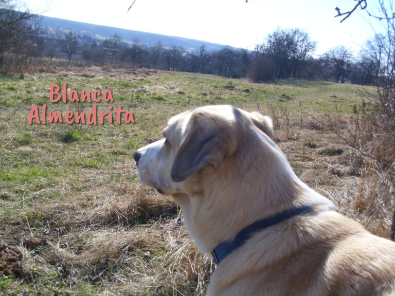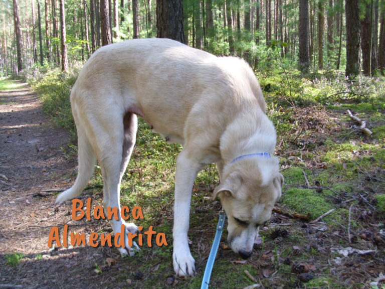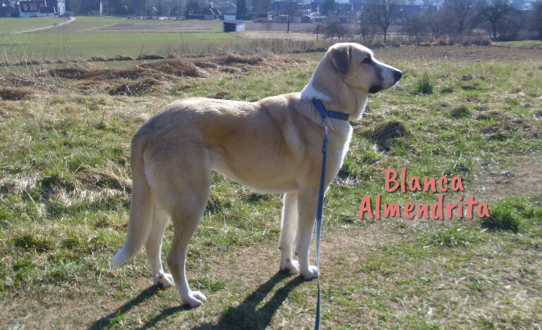 Blanca Almendrita ist jetzt seit ein paar Wochen bei mir in der Pflegestelle und hat sich gut an den Tagesablauf gewöhnt. Sie ist stubenrein und läuft nun sehr gut an der Leine. Verschmust wie diese große Hundedame ist, gibt es auch keine Probleme damit, Blanca Almendrita überall anzufassen. Die Voraussetzung dafür ist jedoch, dass sie im neuen Zuhause ihrer Bezugsperson vertraut und diese auch respektiert.