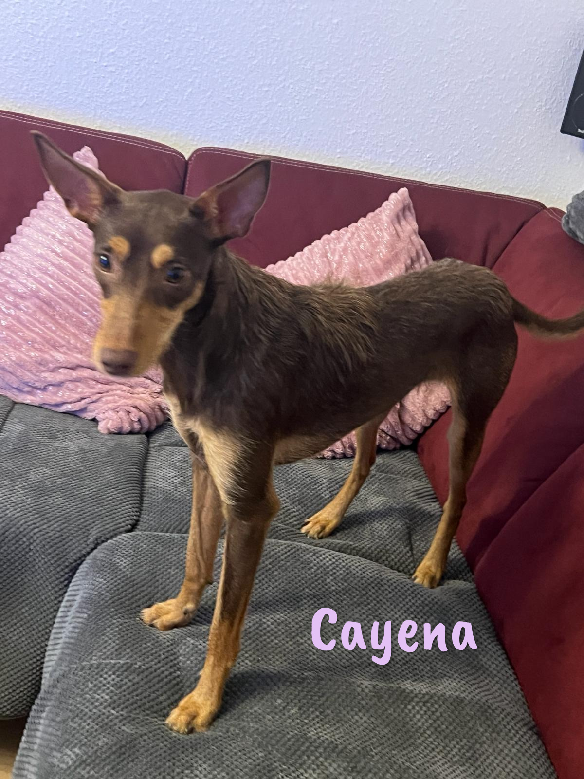 Die hübsche Podenco Orito-Dame Cayena wurde vor wenigen Monaten als Junghündin adoptiert, jedoch kommt die schüchterne Maus in ihrem jetzigen Zuhause nur sehr schwer zur Ruhe. Lange Spaziergänge genießt sie sehr und sie kommt super mit anderen Hunden klar. Sie läuft gut an der Leine und will ihren Menschen gefallen.