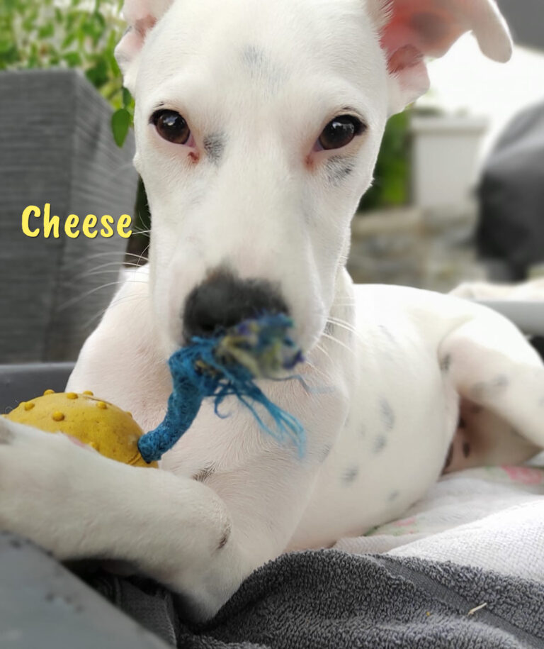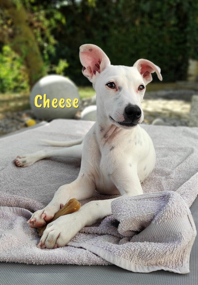 Cheese ist ein sozialer, verschmuster, verspielter Junghund, den Alberto eines Tages einfach auf dem Feld gefunden hat.