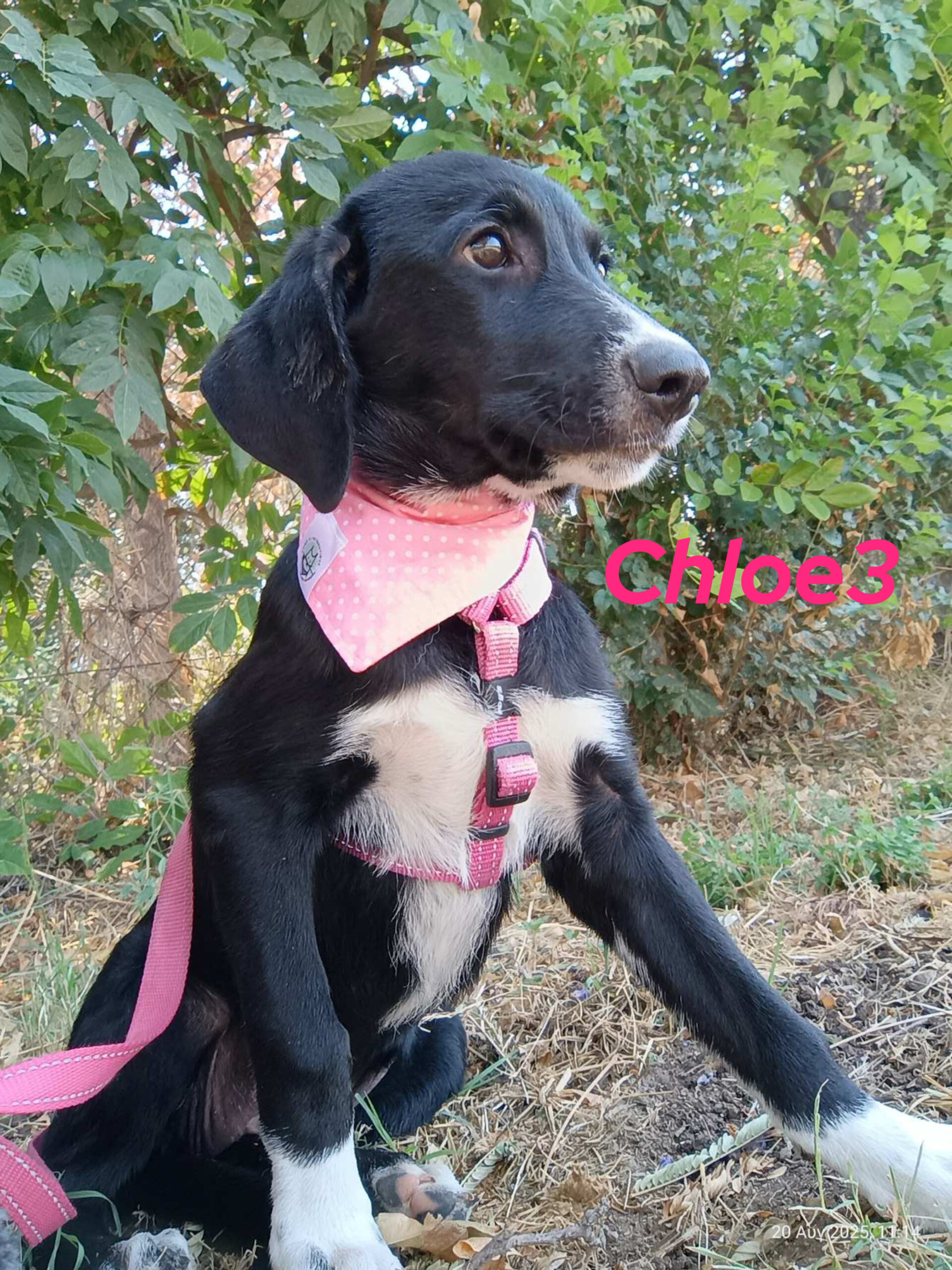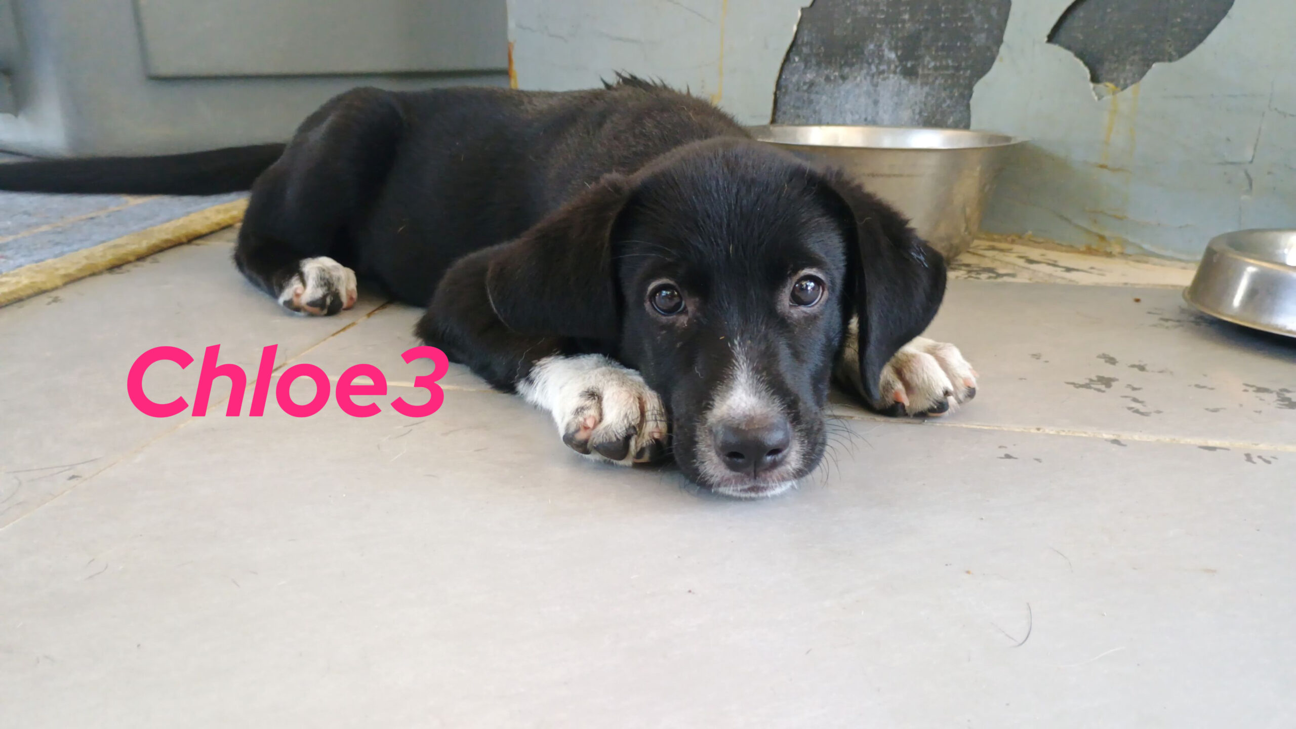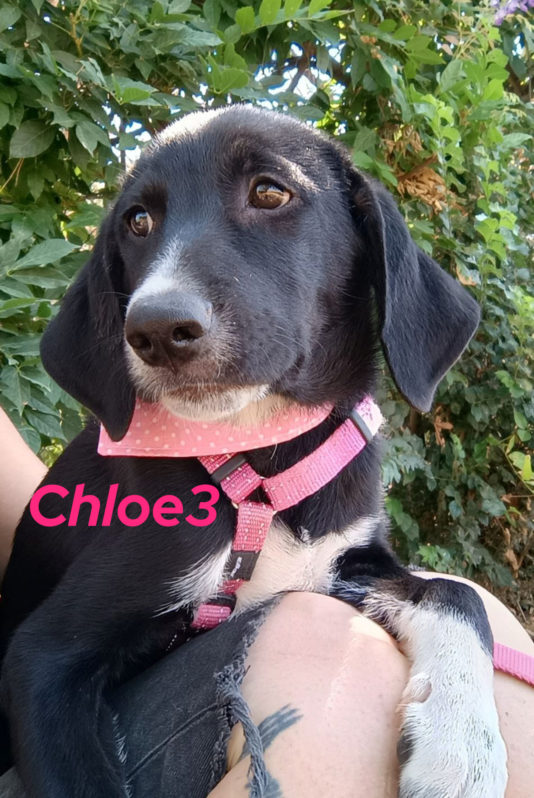 Chloe wurde zusammen mit ihrer Mutter und ihrem Bruder in einer Fabrik geboren. Nun lebt sie in einem Shelter, wo sie sich zu einer fröhlichen, aktiven und neugierigen Hündin entwickelt hat.