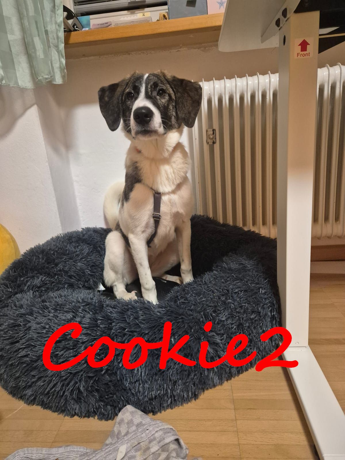 Cookie2 ist nicht nur wunderschön, sondern auch ein echtes Herzchen. Sie ist sehr intelligent und lernt schnell – erste Grundkommandos wie „Sitz“ kennt sie bereits. Sie hat eine neugierige und lebensfrohe Art und liebt es, draußen unterwegs zu sein. Spaziergänge gehören zu ihren größten Freuden. Dabei läuft sie schon problemlos mit dem Rudel mit und hört auch schon auf ihren Namen.