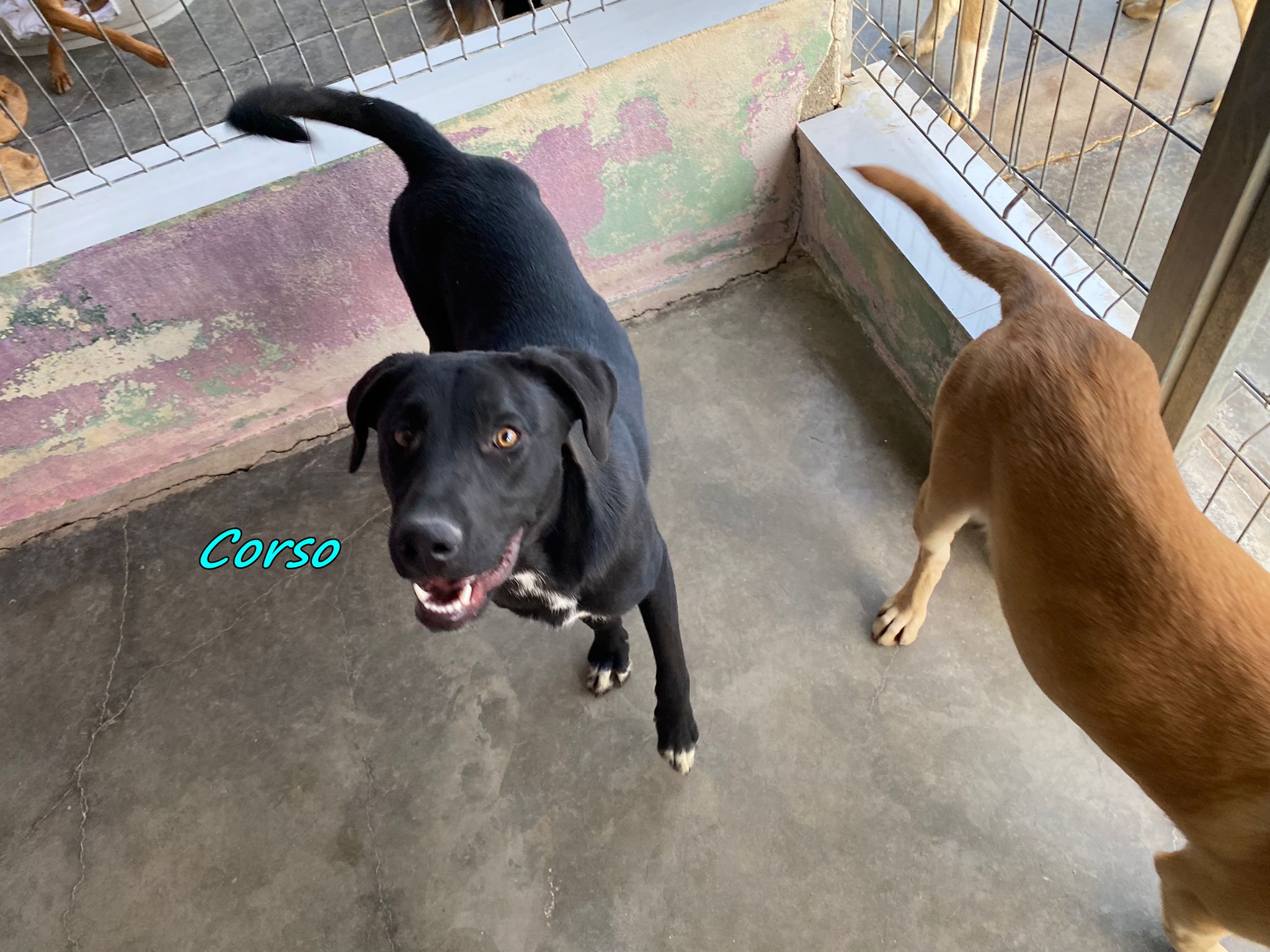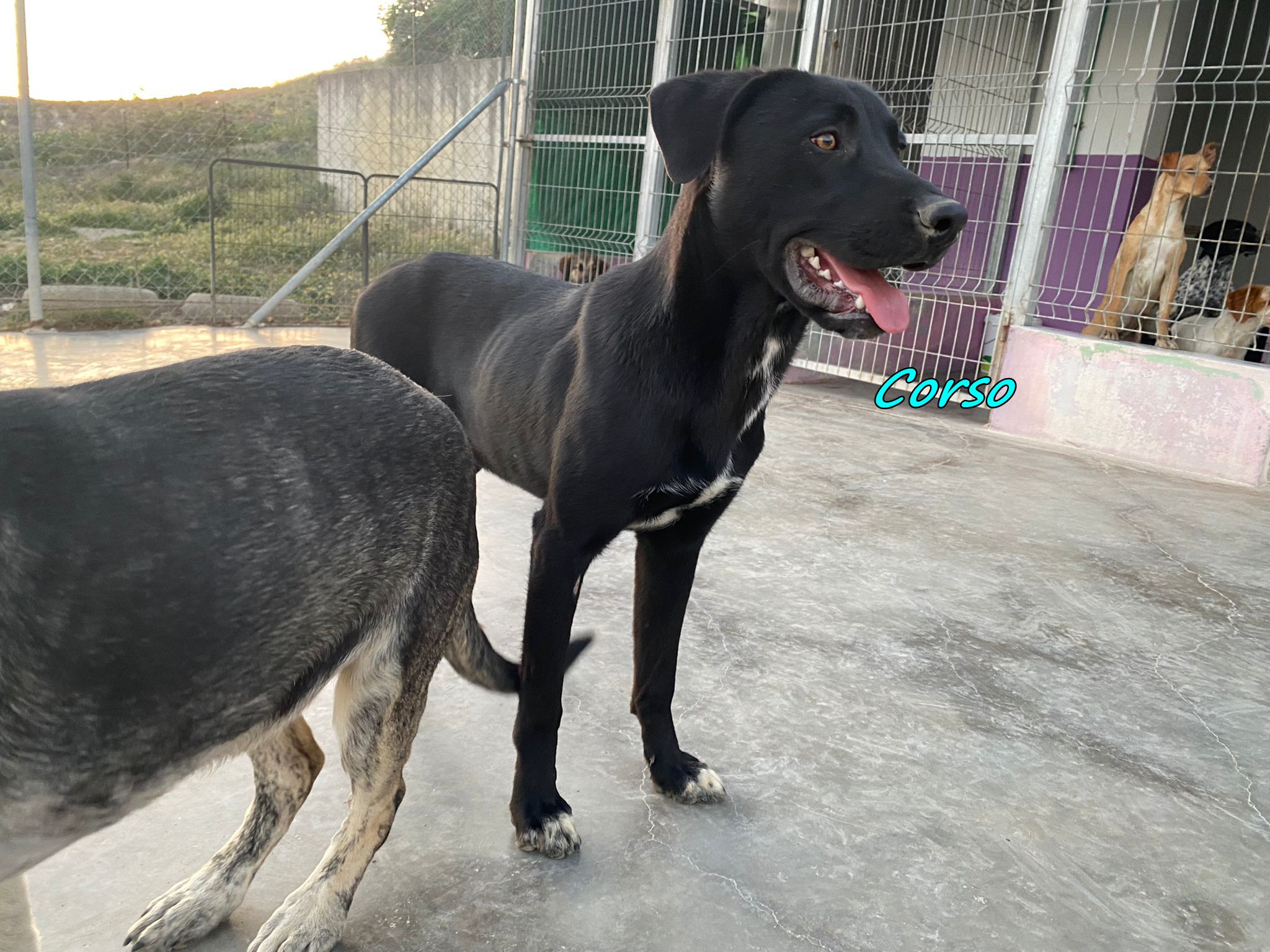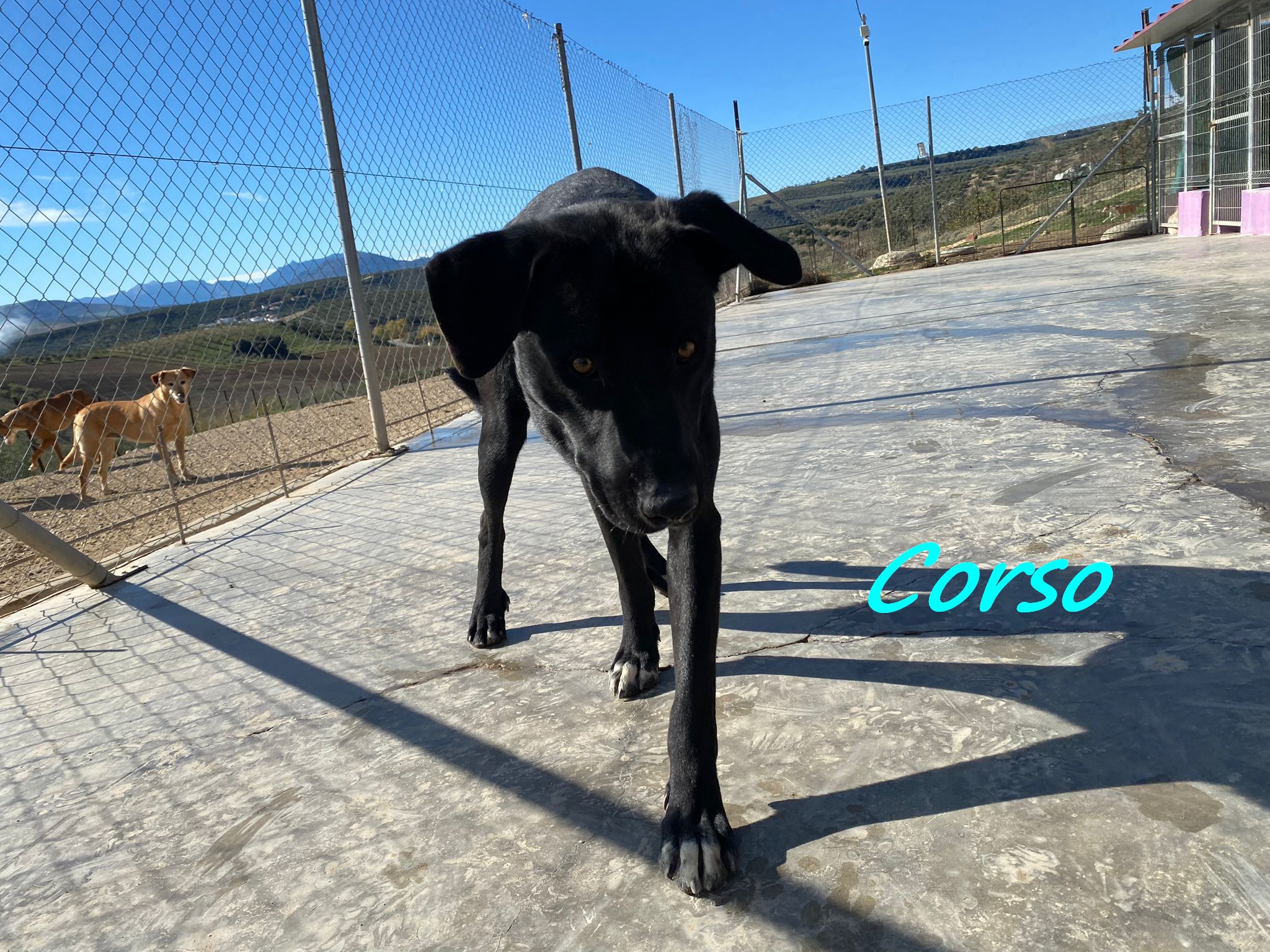 Corso ist sehr zutraulich und mag es geknuddelt zu werden und zu spielen. Er ist mit den anderen Hunden sehr verträglich, und könnte daher sehr gerne zu einem Ersthund. Neben einem Spielkameraden, könnte ein Ersthund ihm auch durch Orientierung und Sicherheit beim Meistern eines neuen Alltags helfen. Das Refugio hat er nur ein paar Mal verlassen und das Fahren im Auto sowie der Besuch beim Tierarzt verunsicherten ihn sehr.