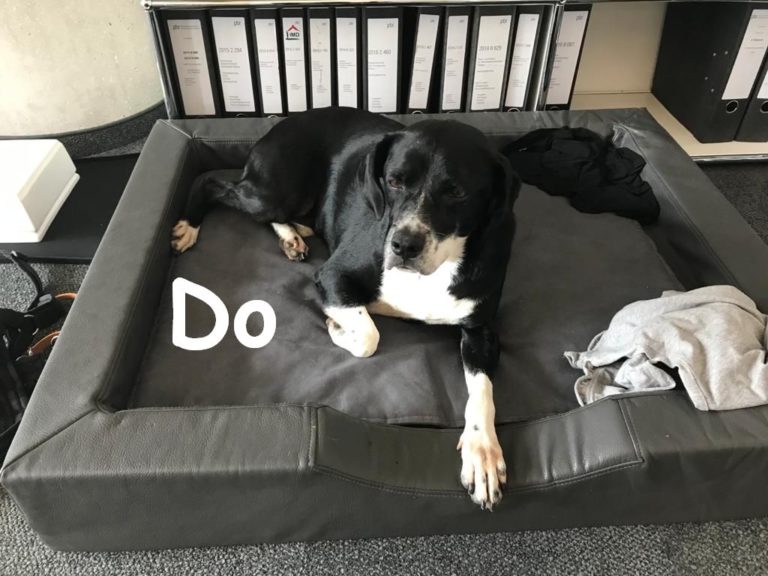 Do zeigte sich von Anfang an als sehr kontaktfreudig und vertrauensvoll. Er ist ausgeglichen und ruhig, außer an Samstagen, dann kann er es nicht erwarten, zum Spaziergang abgeholt zu werden, so sehr freut er sich über ein bisschen Freiheit und mehr Bewegung.