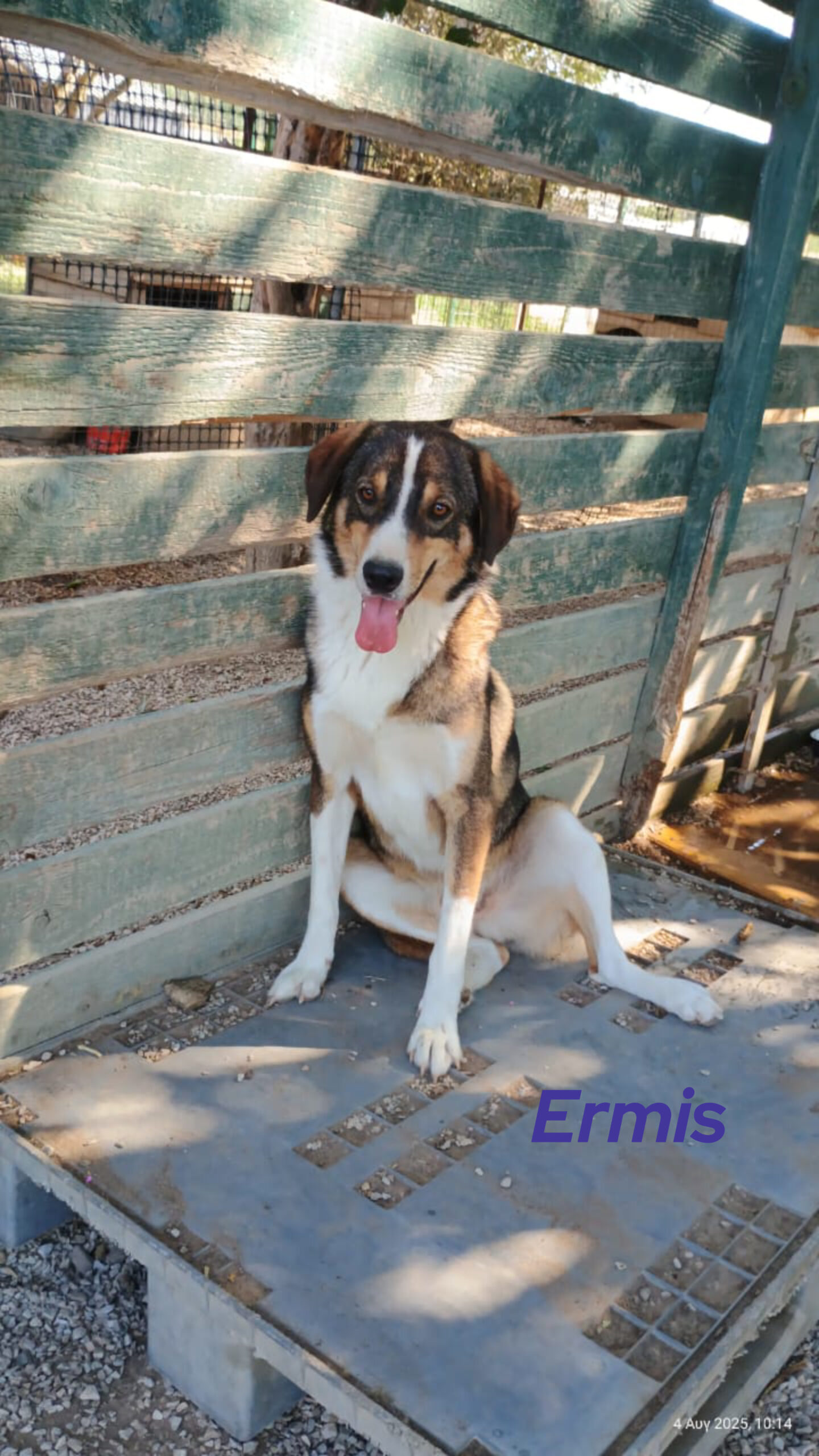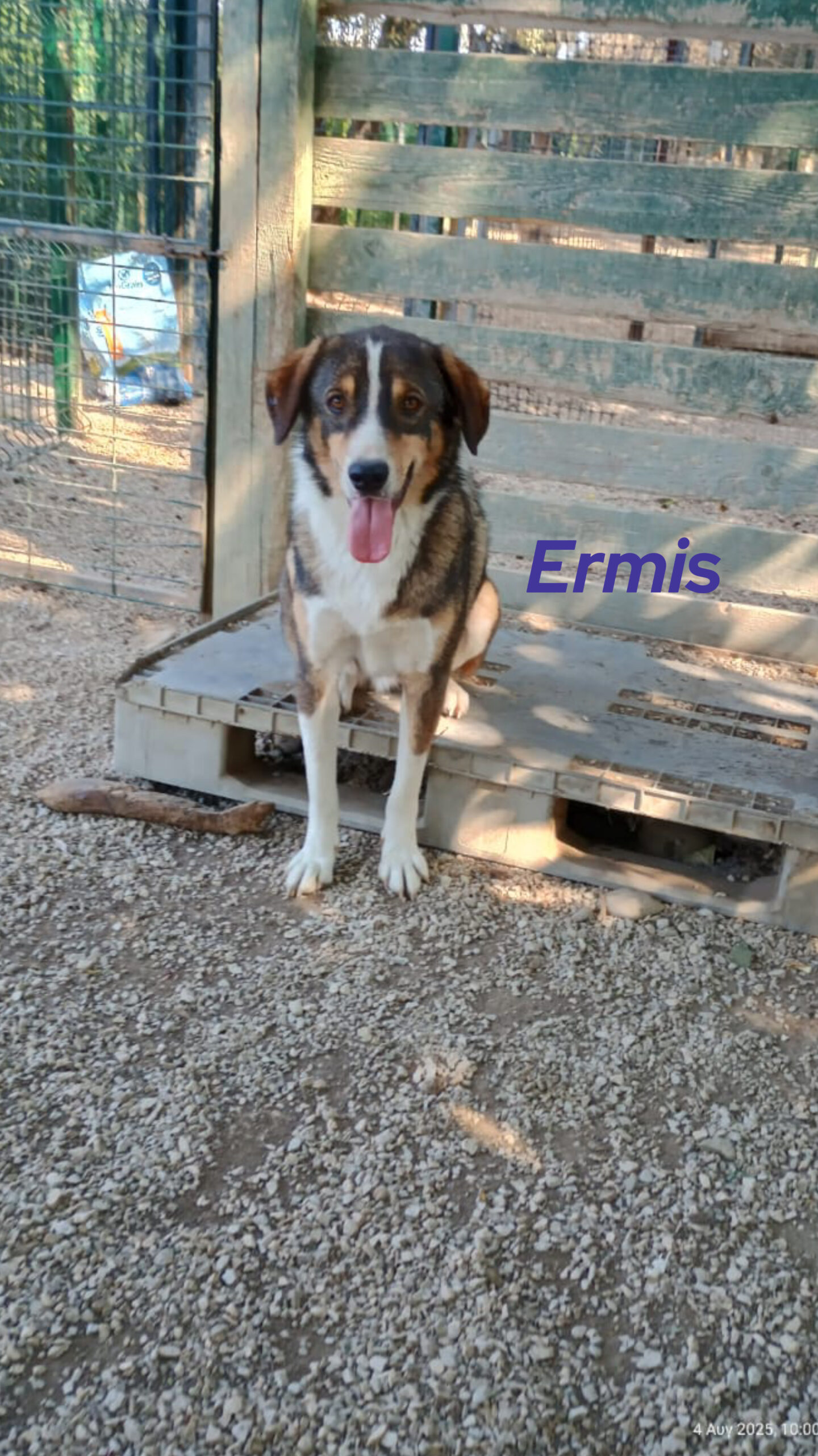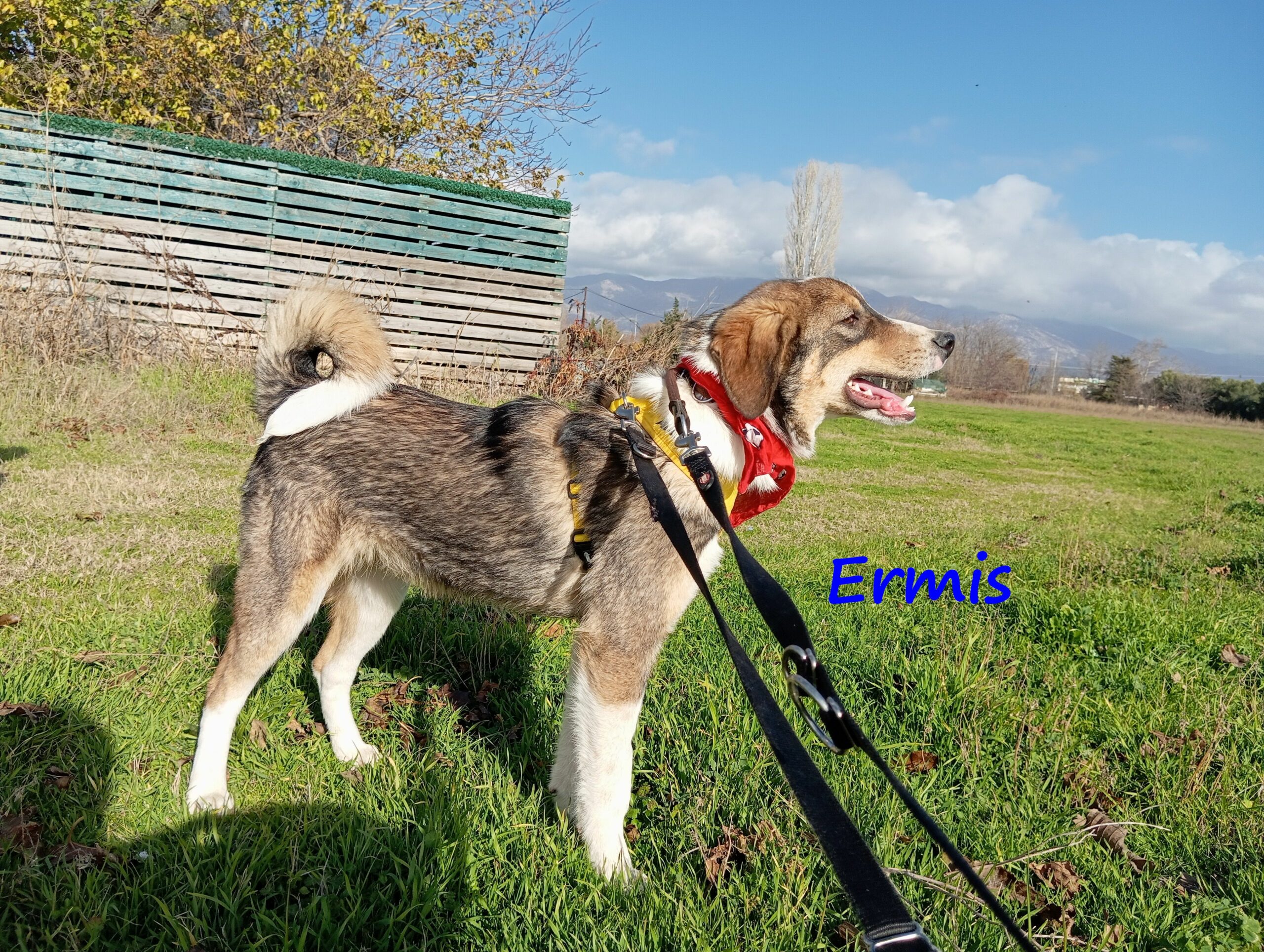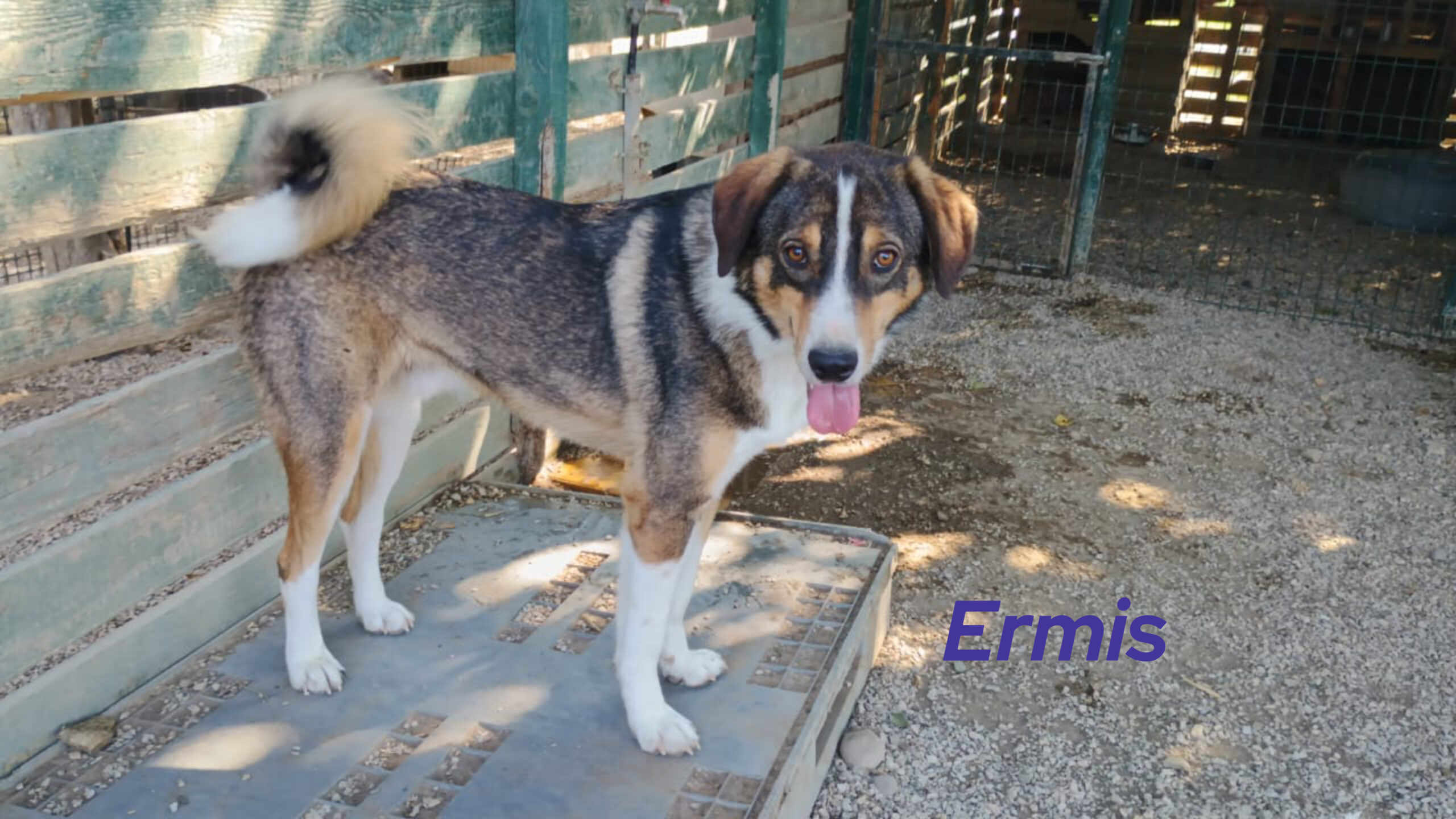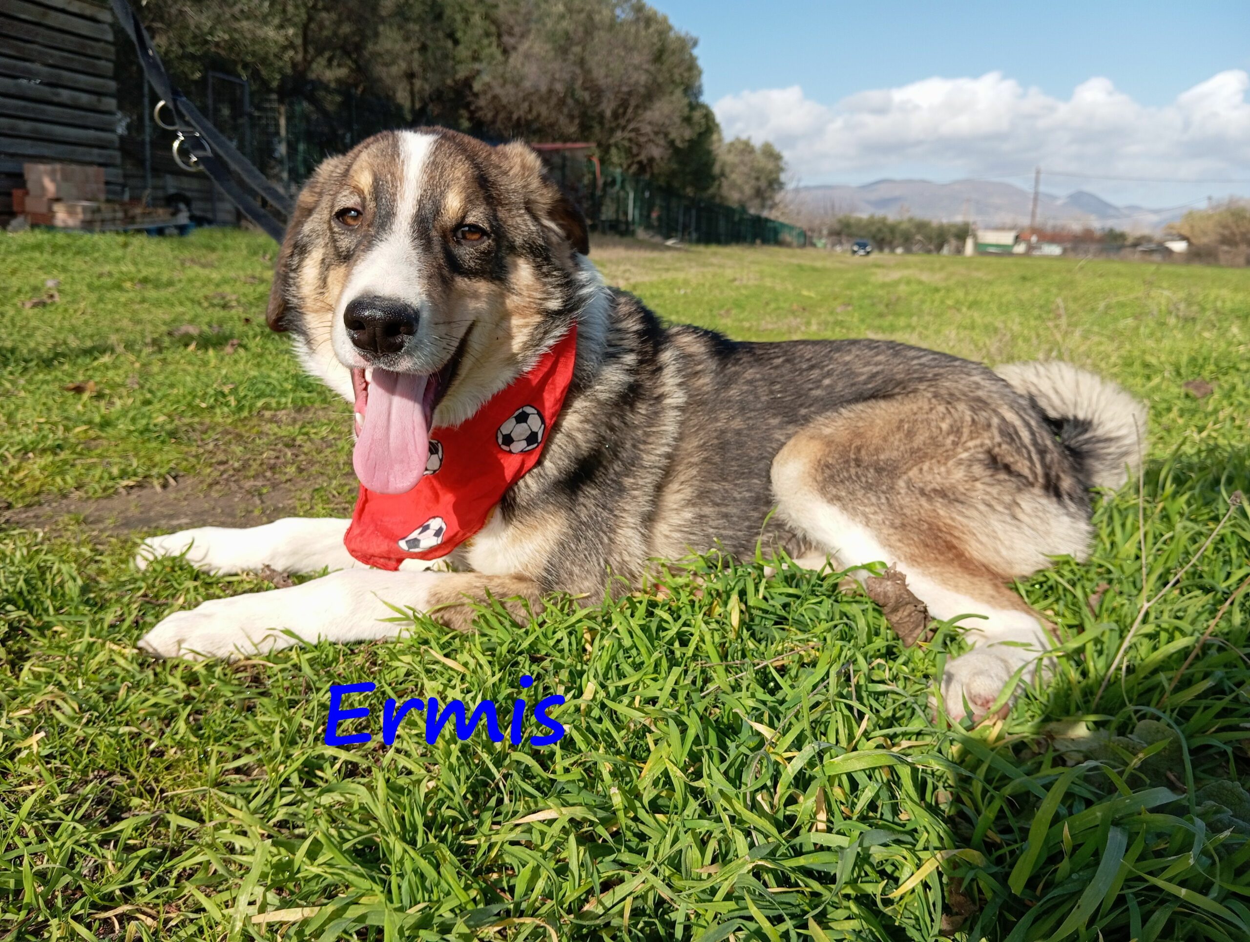 Ermis ist ein süßer und sozialer Hund. Er vertraut den Menschen und liebt es, in ihrer Nähe zu sein. Er ist fröhlich, freundlich, welpentypisch verspielt und sozial mit anderen Hunden.