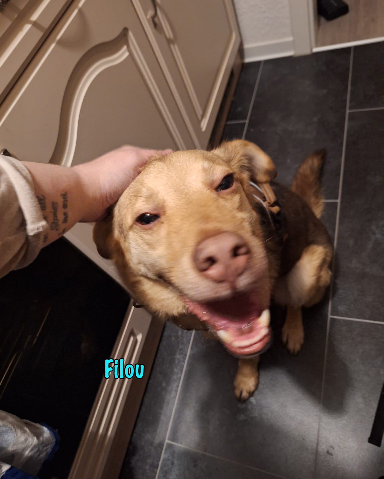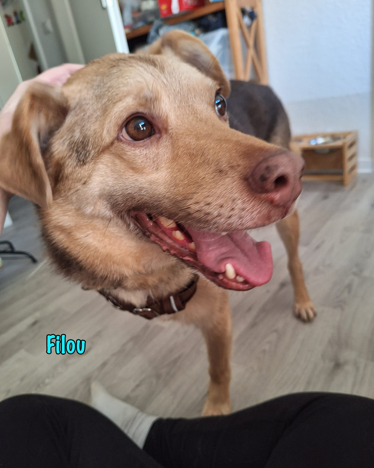 Trotz seines Handicaps kommt Filou wunderbar zurecht; er ist flink unterwegs, beherrscht die wichtigsten Grundkommandos und meistert sogar Treppen bis in den zweiten Stock ohne Schwierigkeiten. Da das Laufen auf drei Beinen jedoch anstrengender ist, bevorzugt er über den Tag verteilt mehrere kürzere Spaziergänge anstelle langer Wanderungen. Besonders morgens genießt er die Zeit an der frischen Luft, während er es abends lieber gemütlich angehen lässt.