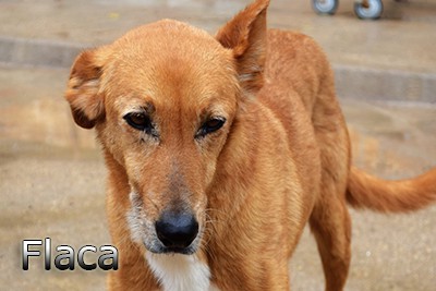 Sie ist eine sehr ruhige Hündin, man merkt nicht, dass sie da ist, da sie sich immer sehr leise nähert, dann plötzlich spürt man, dass jemand deine Hand berührt und Flaca dort um Gesellschaft und Zuneigung bittet.