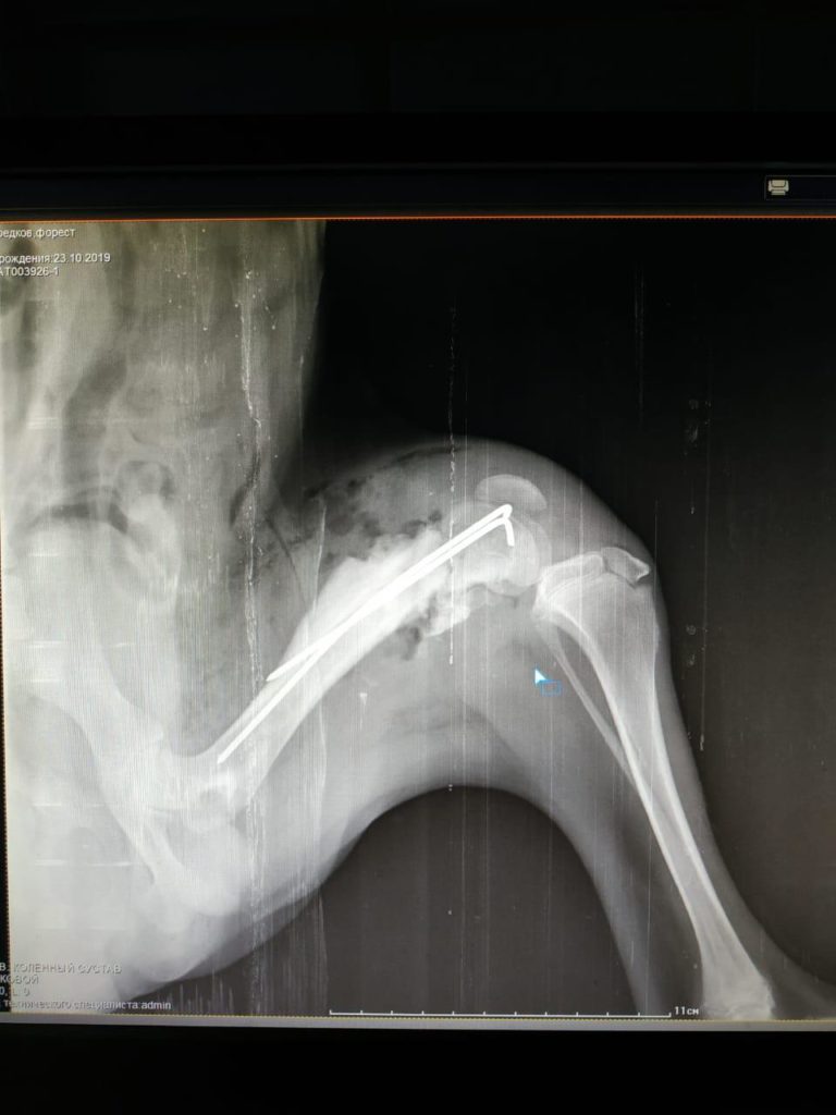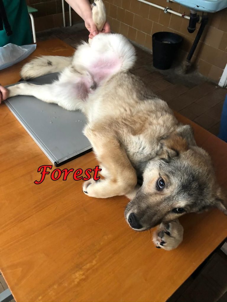 Beim Tierarzt wurde festgestellt, dass die gebrochenen Hinterbeine bereits am Heilen waren. Allerdings musste ein Hinterbein operiert werden. Infolge der Verletzung ist ein Hinterbein etwas kürzer als das andere, dies hat jedoch keinerlei Auswirkungen auf das Leben von Forrest. Er ist mobil und aktiv.