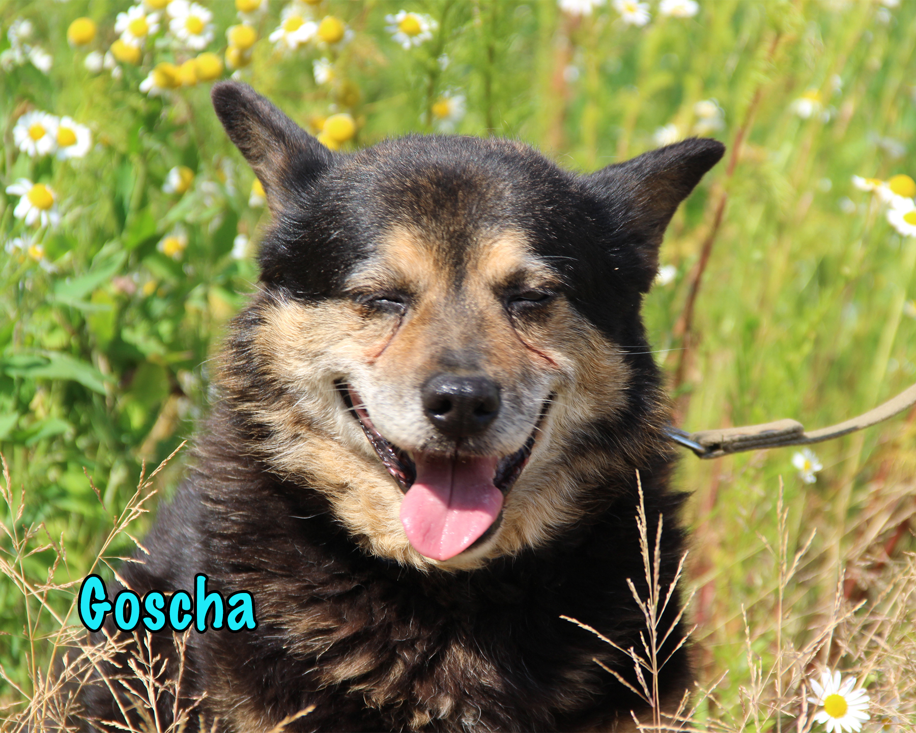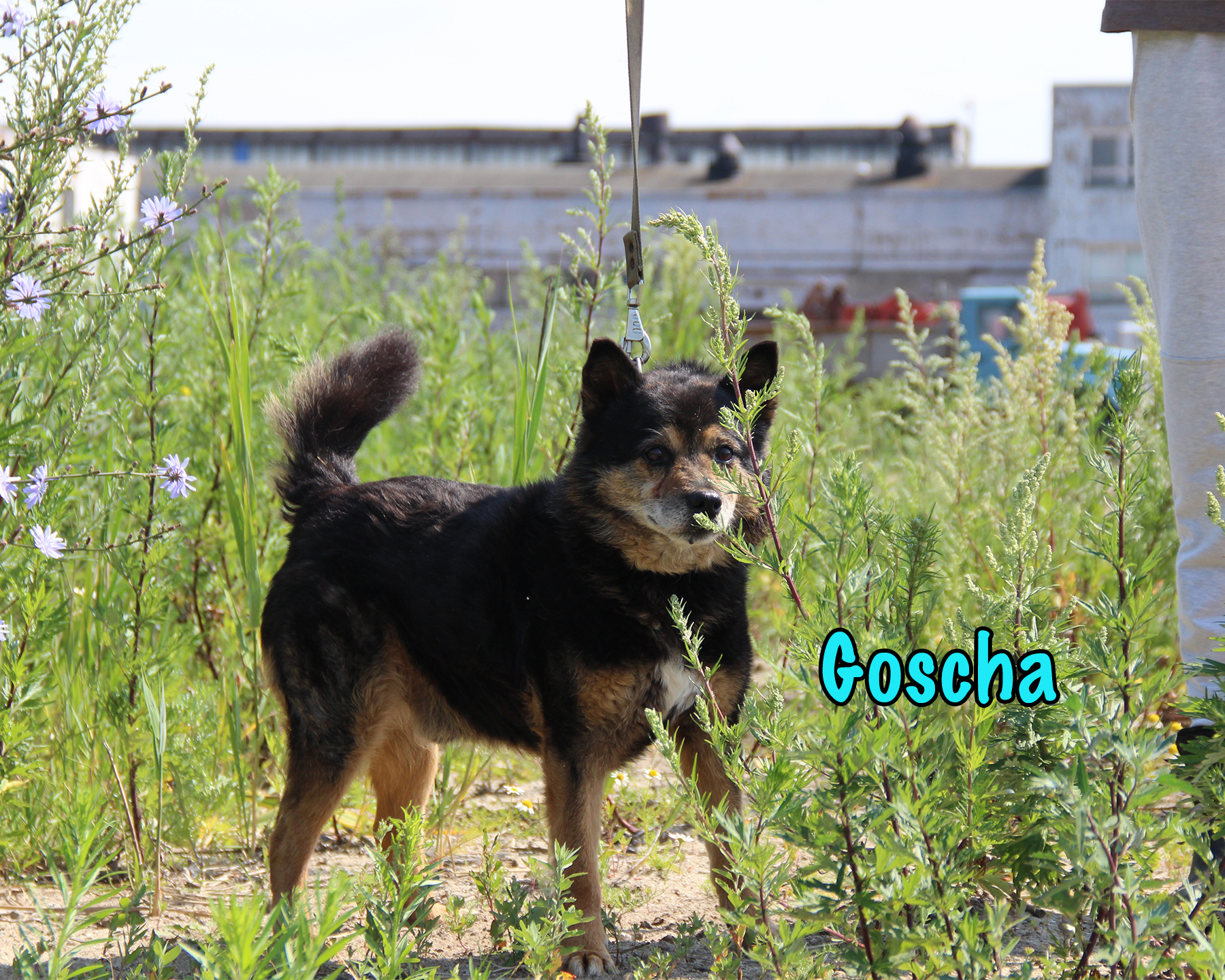 Goscha wurde vor 2 Jahren von seinem Besitzer ins Tierheim gebracht. Nach dem Umzug war in der neuen Wohnung kein Platz mehr für den Hund. Vom Kleinkindalter an wohnte Goscha mit dem Besitzer zusammen und im Alter landete er in einem Tierheim – der Hund war verzweifelt. Er aß nicht, trank nicht, lag und wartete darauf, dass sein Besitzer ihn abholt – doch, er kam nicht. Dank der Freundlichkeit der Ehrenamtler erwachte Goscha zum Leben. Er vertraut wieder den Menschen. Er ist ein freundlicher, offener und positiver Hund, der gut mit Menschen, Katzen und anderen Hunden klar kommt. Er wedelt immer mit dem Schwanz. Goscha läuft gut an der Leine, zieht sie nicht und hängt an Blicken der Menschen mit großer Hoffnung.