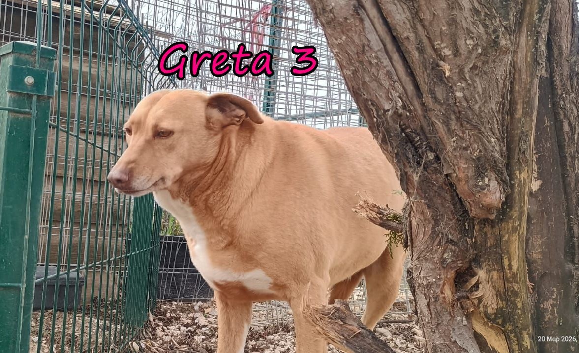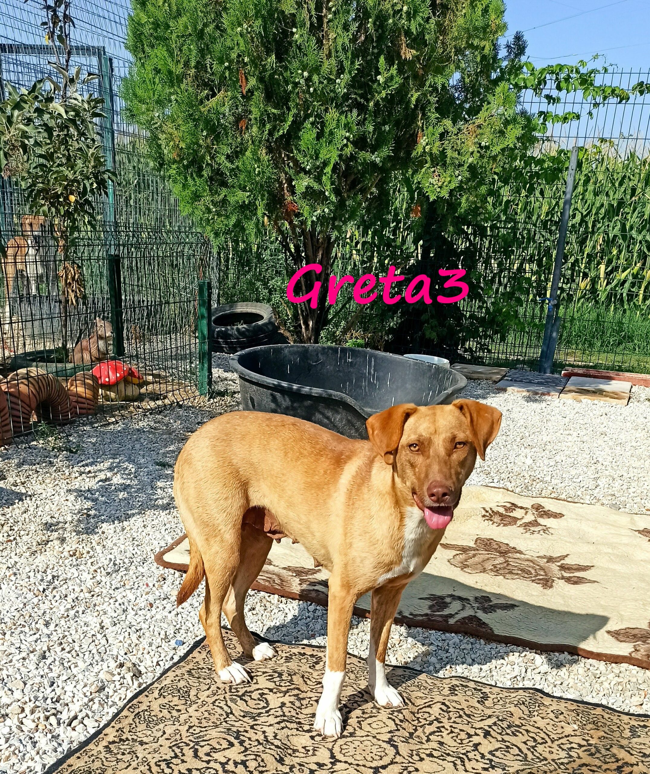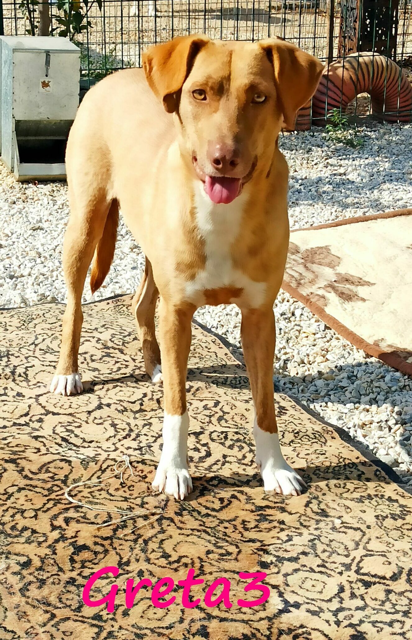 Greta3 ist schon seit etwa 3 Jahren im Tierheim in Xanthi. Sie ist sehr ängstlich und lässt sich auch nicht anfassen. Zwar freut sie sich, wenn sie die Menschen dort sieht, aber sobald man sie streicheln möchte, ist sie weg. Für sie ist das Tierheim absolut nicht der richtige Ort um Vertrauen zu lernen. Deshalb suchen wir dringend einen schönen Platz für sie, mit Menschen, die viel Liebe und Geduld mitbringen, damit sie lernen kann wie schön Streicheleinheiten sein können. Zu anderen Hunden ist sie sozial und freundlich. Allerdings sollten diese keine Welpen oder kleiner, als sie sein.