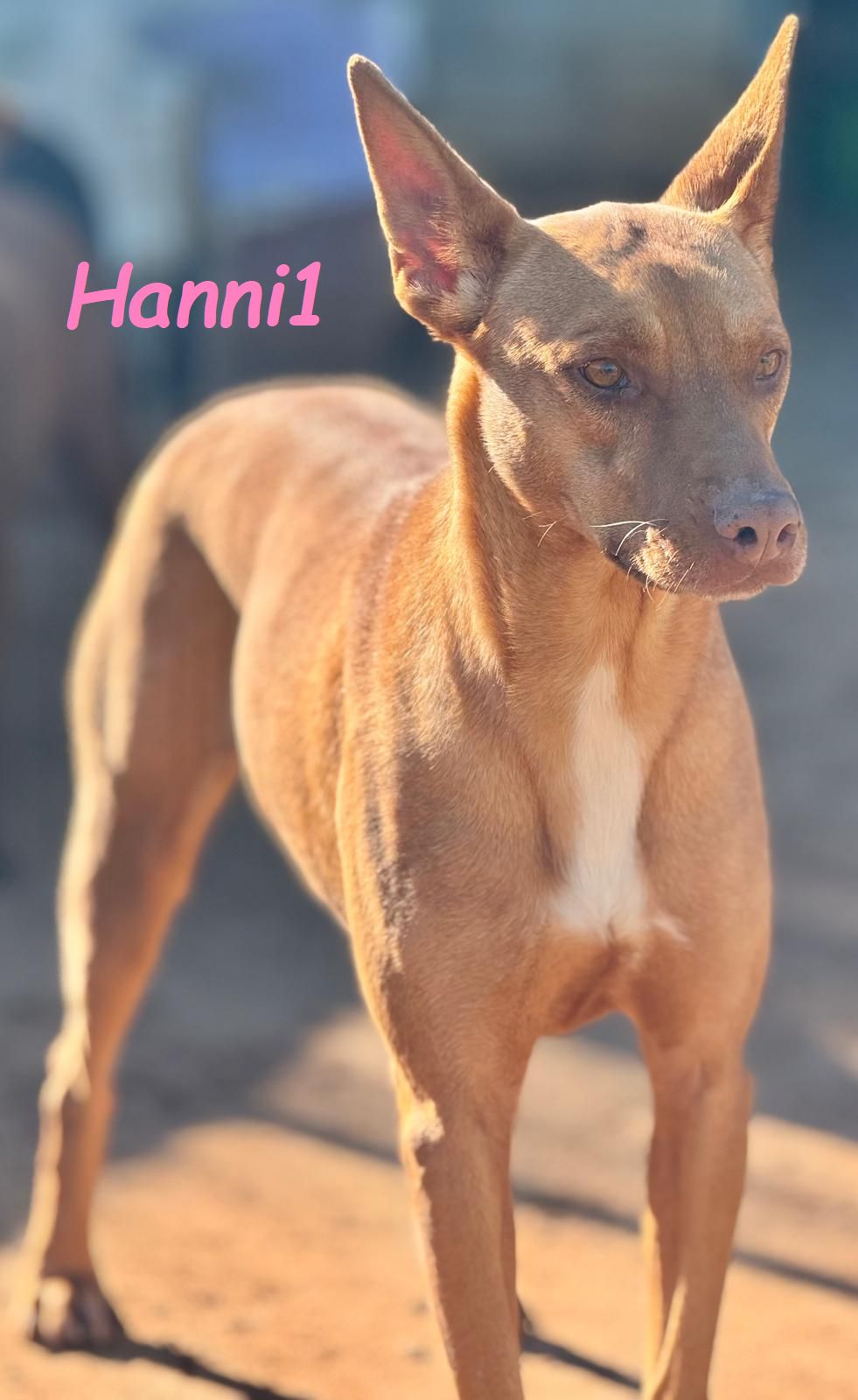 Hanni1 ist ein wahrer Freund des Menschen. Sie ist äußerst anhänglich und gehorsam und sucht stets die Nähe ihrer Menschen, denn der menschliche Kontakt bedeutet ihr alles. Mit ihrer aktiven und verspielten Art bringt sie Leben in jeden Raum und sorgt für fröhliche Momente.
