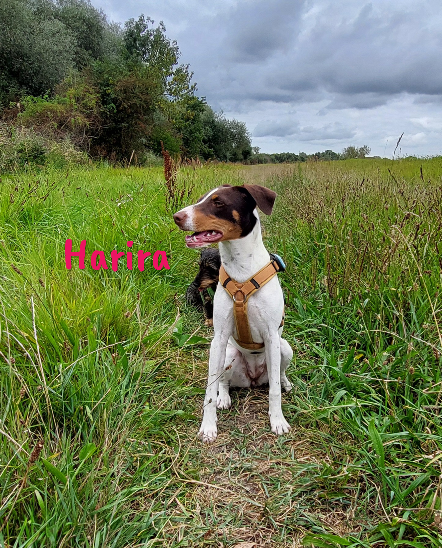 Sie ist eine verschmuste, aktive Junghündin, die draußen Bewegung liebt und drinnen angenehm ruhig sein kann. Harira ist clever, neugierig und steckt mitten in ihrer Junghundephase – sie möchte noch viel lernen und braucht klare, liebevolle Anleitung. Mit anderen Hunden spielt sie gern und zeigt sich insgesamt sehr kontaktfreudig. Katzen sollten nicht im Haushalt leben; mit Kindern hat sie bisher keine langfristigen Erfahrungen gemacht.