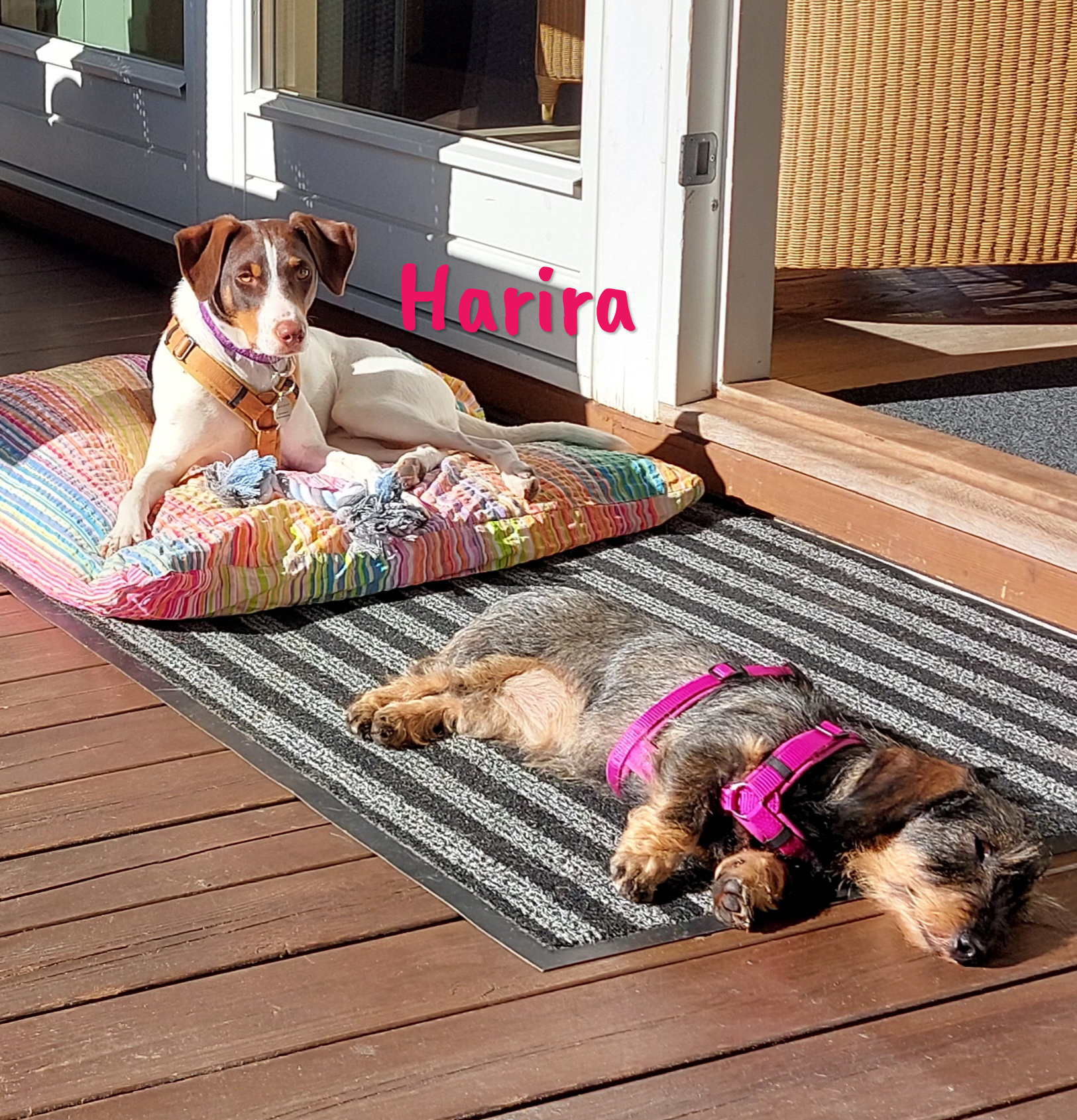 Harira und ihre Geschwister Pastela, Bissara, Hummus1, Kofte, Tajín und Cous Cous sind das Produkt einer ungewollten Trächtigkeit. Sie leben noch bei der Mutter auf einem Bauernhof, werden aber bald in den Shelter ziehen müssen, weil das Grundstück nicht sicher ist.