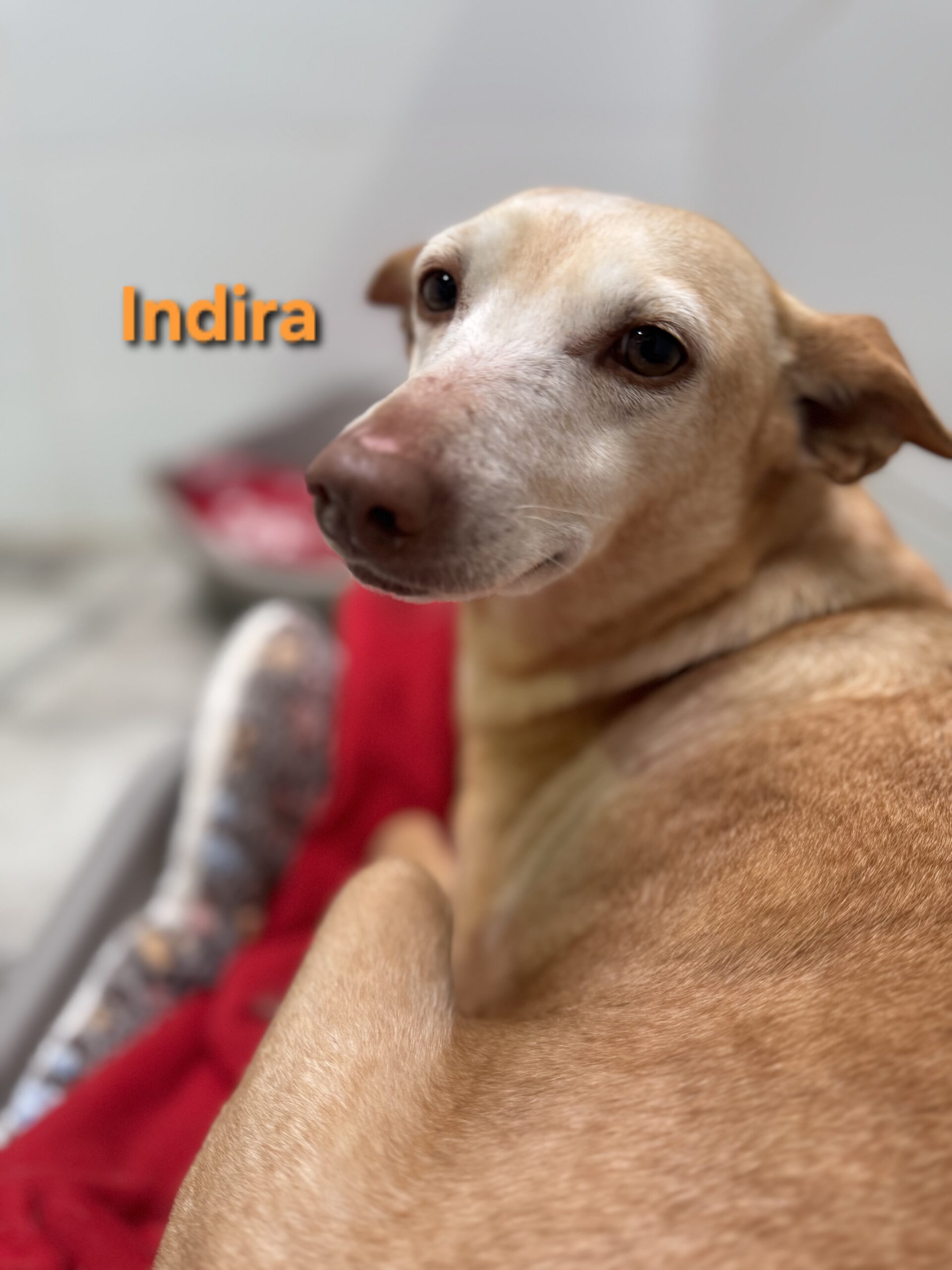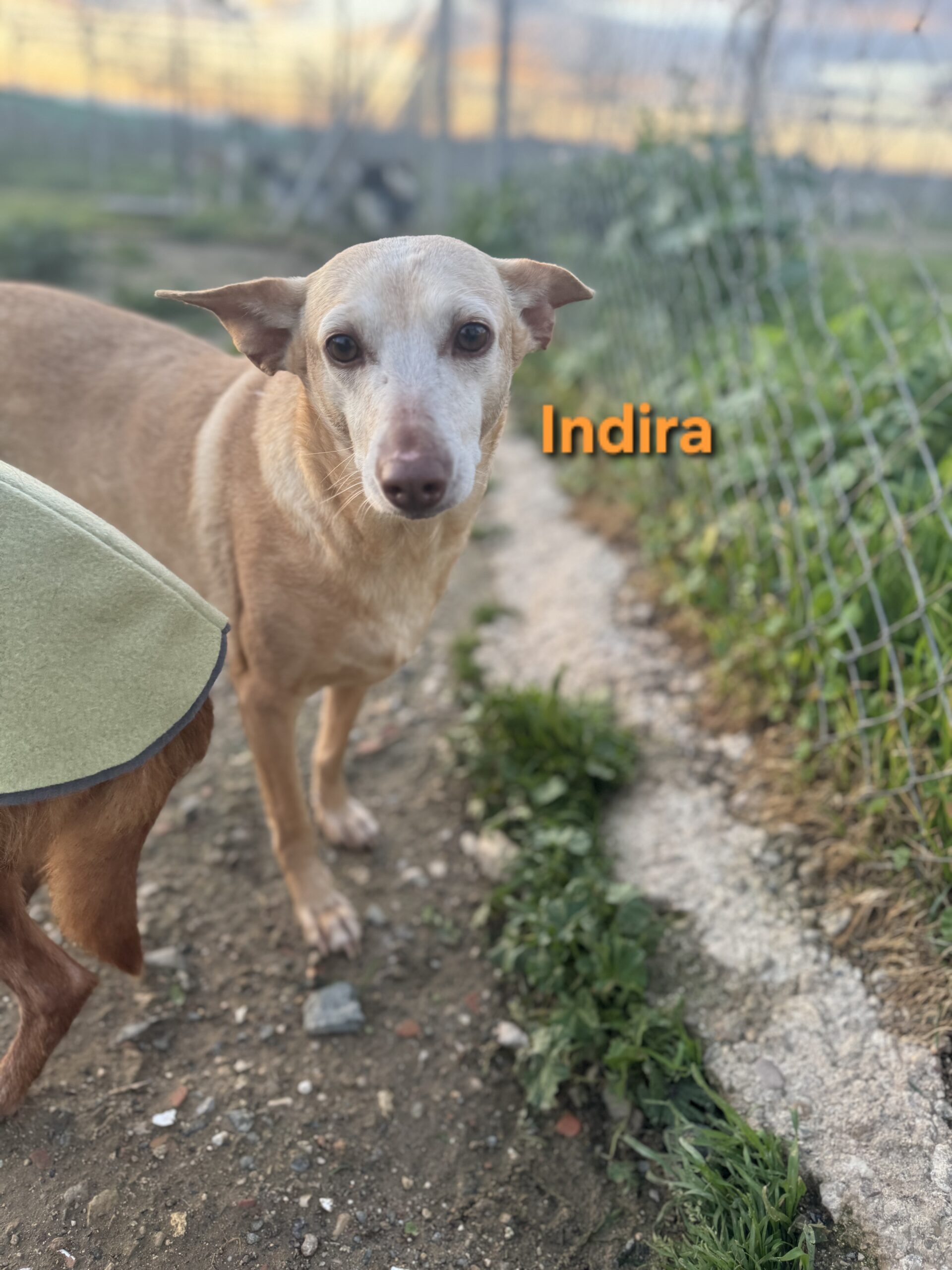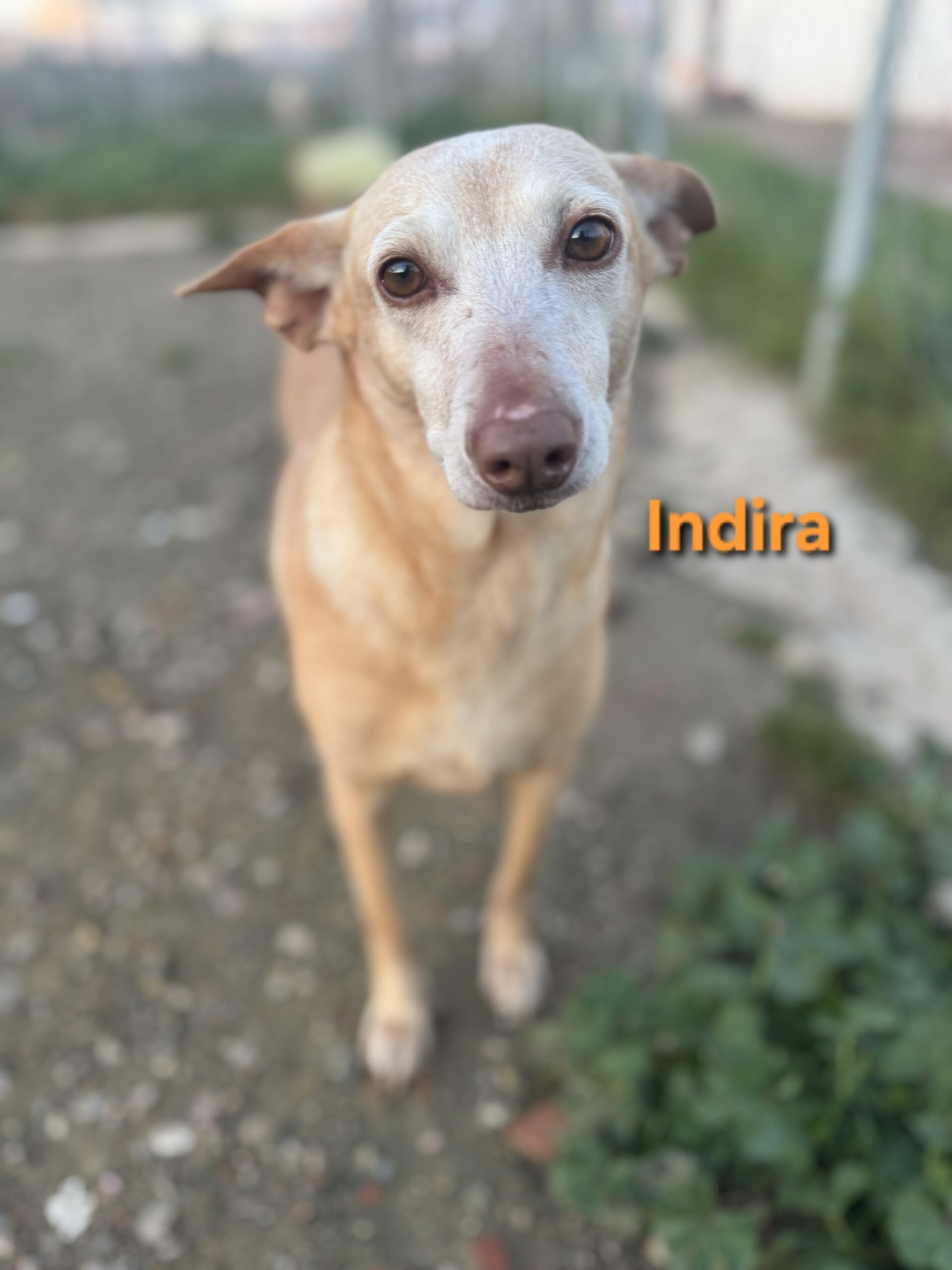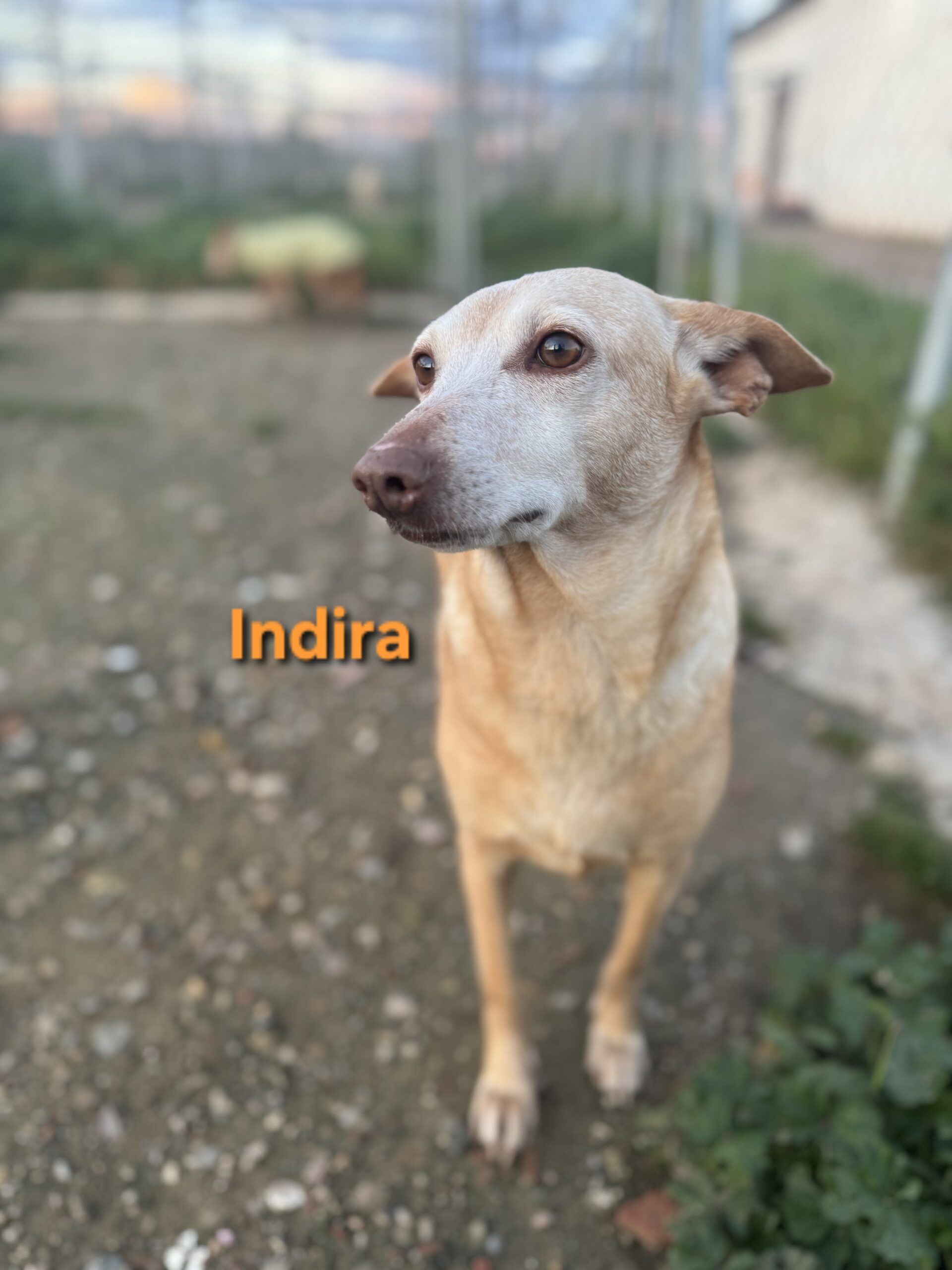Indira stammt von einem Hof in der Gegend von Lucena, von dem immer wieder Hunde übernommen werden, die unter schlechten Bedingungen gehalten wurden. Viele dieser Hunde kannten kein normales Leben, keine Fürsorge und keinen Schutz. Auch Indira musste dort lange ausharren.