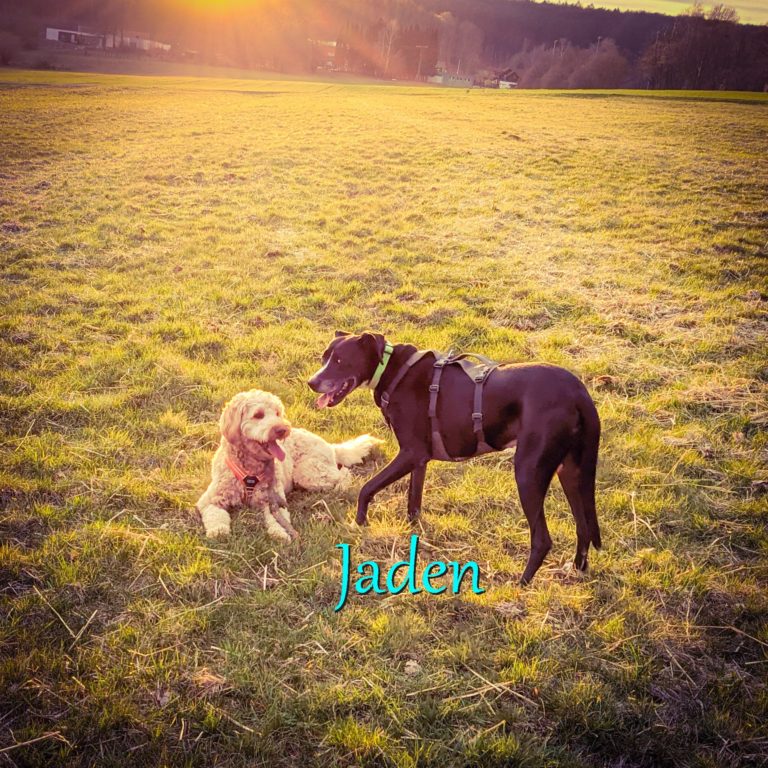 Auch draußen ist er ein toller Hund. Begegnungen mit anderen Artgenossen sind entspannt. Er will Hallo sagen, geht aber auch genauso gut im Fuß an dem Hund vorbei. Wenn irgendwo ein anderer Hund kläfft, interessiert ihn das Null. Man lernt mit Jacen auch definitiv viele Menschen kennen, weil er sich doch gerne Leckerlis abholt.