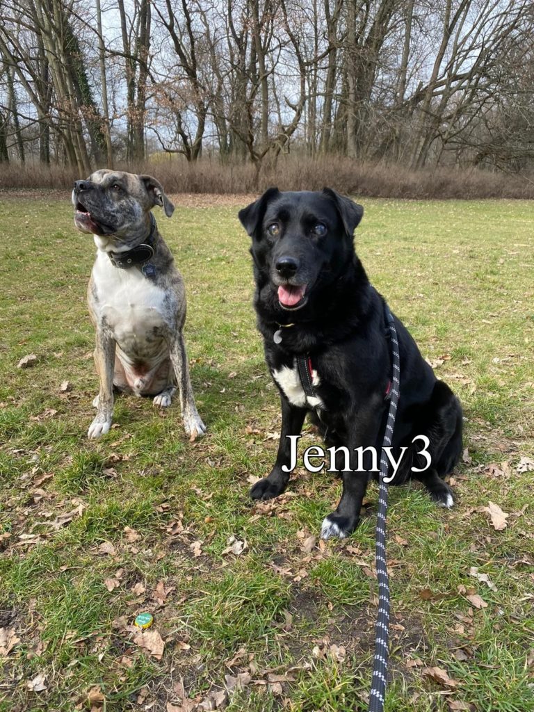 Jenny3 ist eine ruhige, entspannte, verschmuste Hündin, die sowohl Menschen als auch Hunde sehr mag und super mit ihnen zurecht kommt. Sie liebt es mit ihrem Menschen zu kuscheln und lässt sich dabei gerne am Bauch kraulen. Auch bleibt sie hin und wieder mal ein paar Stunden alleine ... dann knabbert sie genüsslich an einem Knochen oder spielt mit ihrem Spielzeug, wobei sie auch immer mal wieder gerne ein Schläfchen hält.