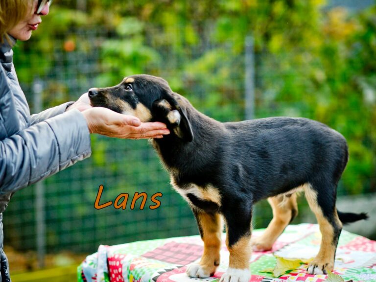 Lans ist der größte Welpe und im Gegensatz zu seinen Brüdern langbeinig. Er ist aktiv, verspielt, anhänglich, gesellig und liebt es zu „sprechen“, wenn er etwas von seinem Menschen möchte, z.B. Fressen, Plaudern oder Spielen.