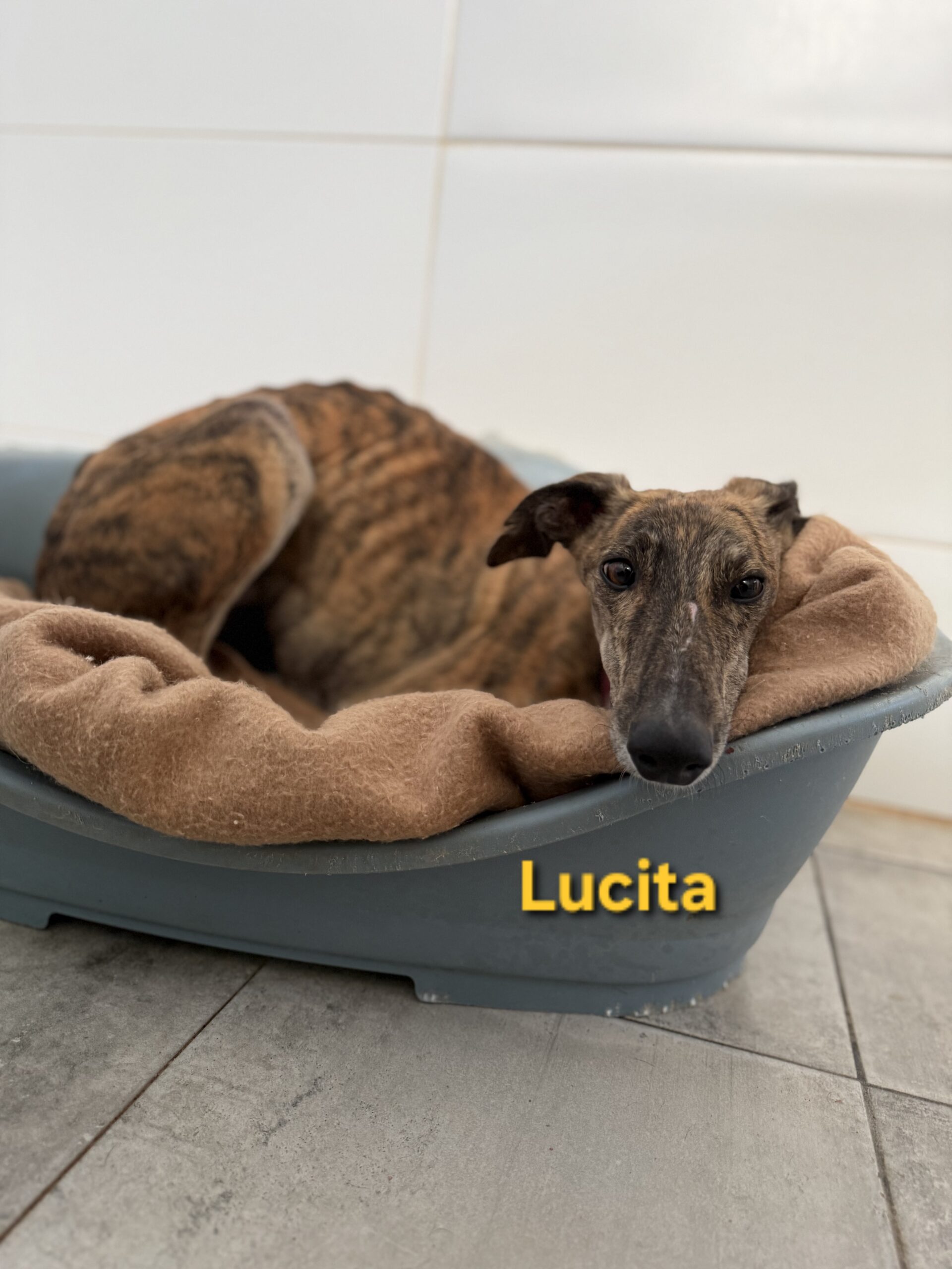 Lucita ist eine wunderschöne, gestromte Galga.