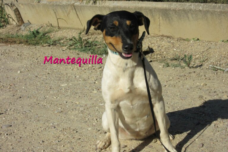 Mantequilla (Butter) hat diesen Name bekommen, weil sie zart und geschmeidig ist. Sie wurde vor der Tierklinik angebunden und es war klar, dass sie Alberto und Alicia nicht im Stich lassen würden.
