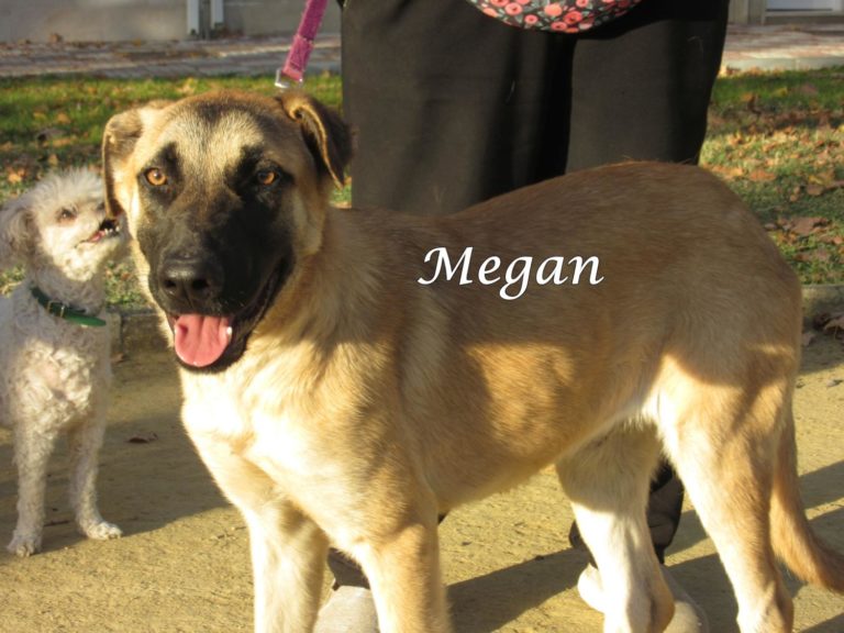 Sie nahm Megan auf und bat Alberto und Alicia um Hilfe für die Vermittlung. Megan, die sehr ruhig, zutraulich und verschmust ist, darf bei ihr in Pflege bleiben, bis sie eine Familie findet, weil sie sich sehr gut in der Wohnung benimmt und sich mit allen Menschen und Hunden Zuhause versteht.