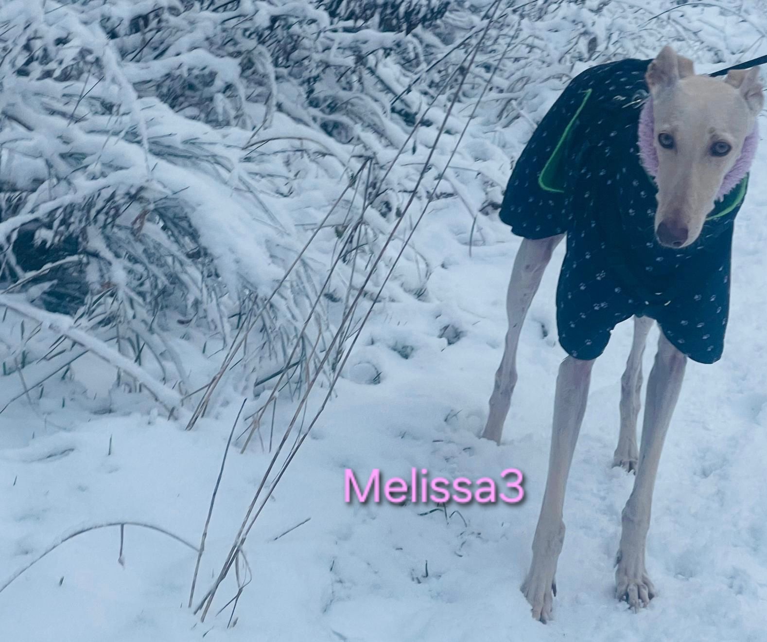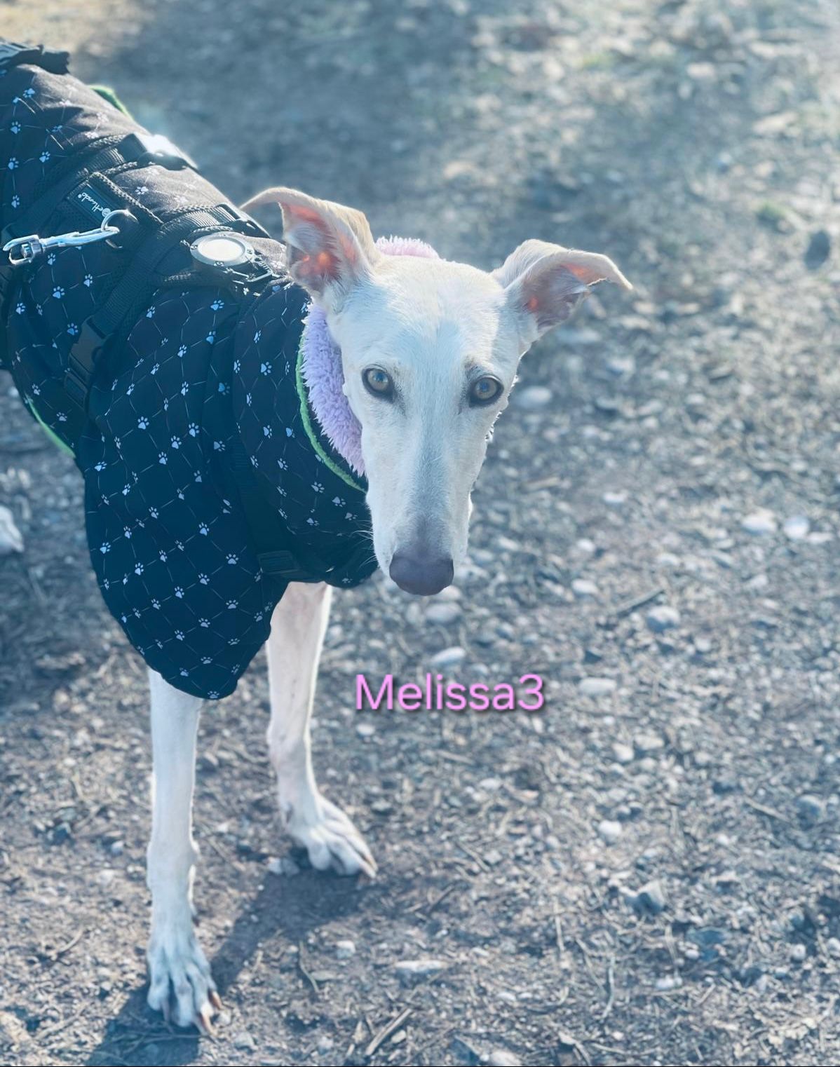 Melissa3 ist eine ängstliche, zurückhaltende Galga, die eine erfahrene Familie braucht, die ihr hilft, ihre Furcht vor Menschen zu überwinden. Sie ist nicht panisch oder zitternd vor Angst, aber sie versucht, schnell auszuweichen, sobald sich jemand nähert. Nur bei den Menschen, die sie täglich füttern, zeigt sie etwas mehr Vertrauen – doch selbst dann bleibt sie noch unsicher, wenn man sie streicheln möchte.