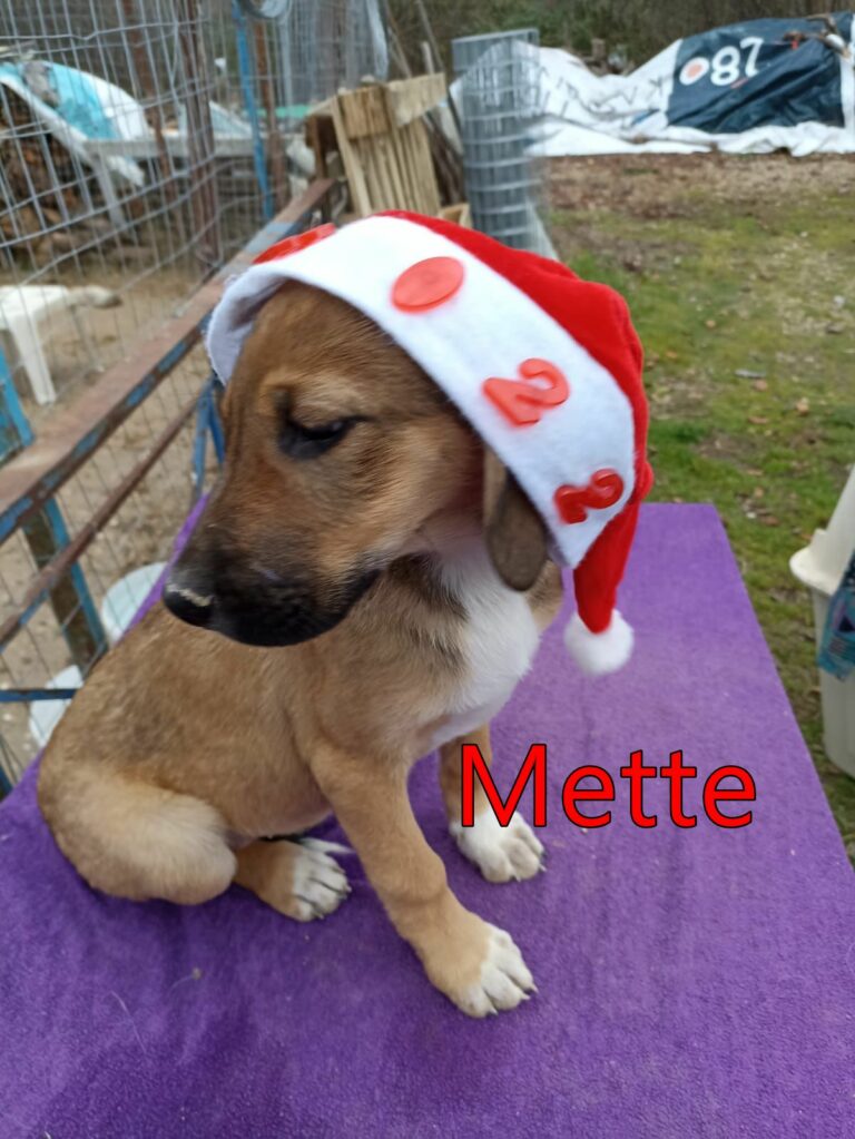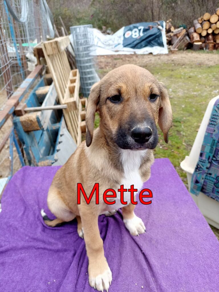 Mette und ihre Geschwister Maika2, Miko, Mokka, Momo2, Mozart2 und Monk2 lebten zusammen auf der Straße. Sie fanden Schutz auf einer liebevollen Pflegestelle. Hier lernten sie neben anderen Hunden auch Katzen kennen.