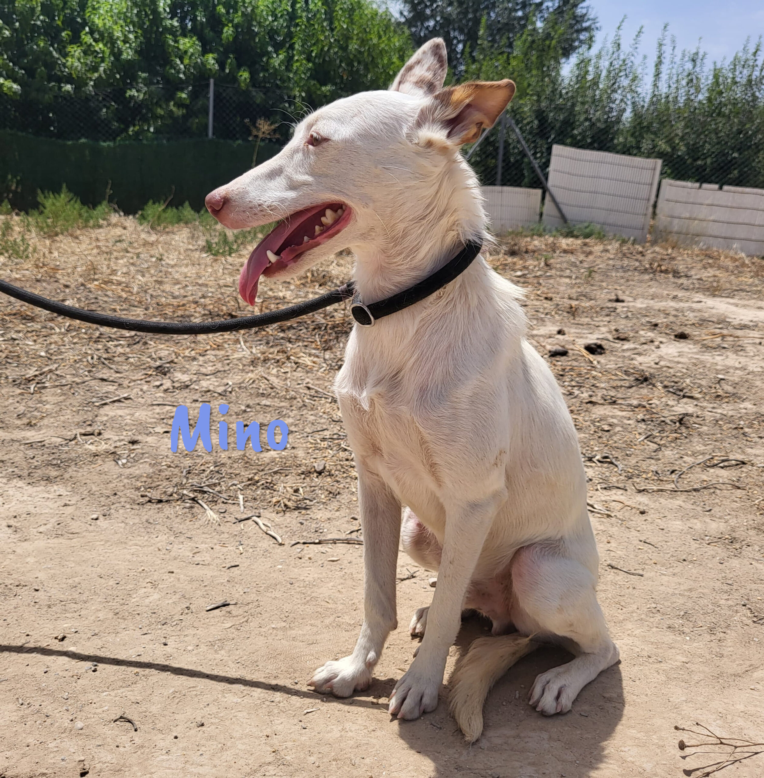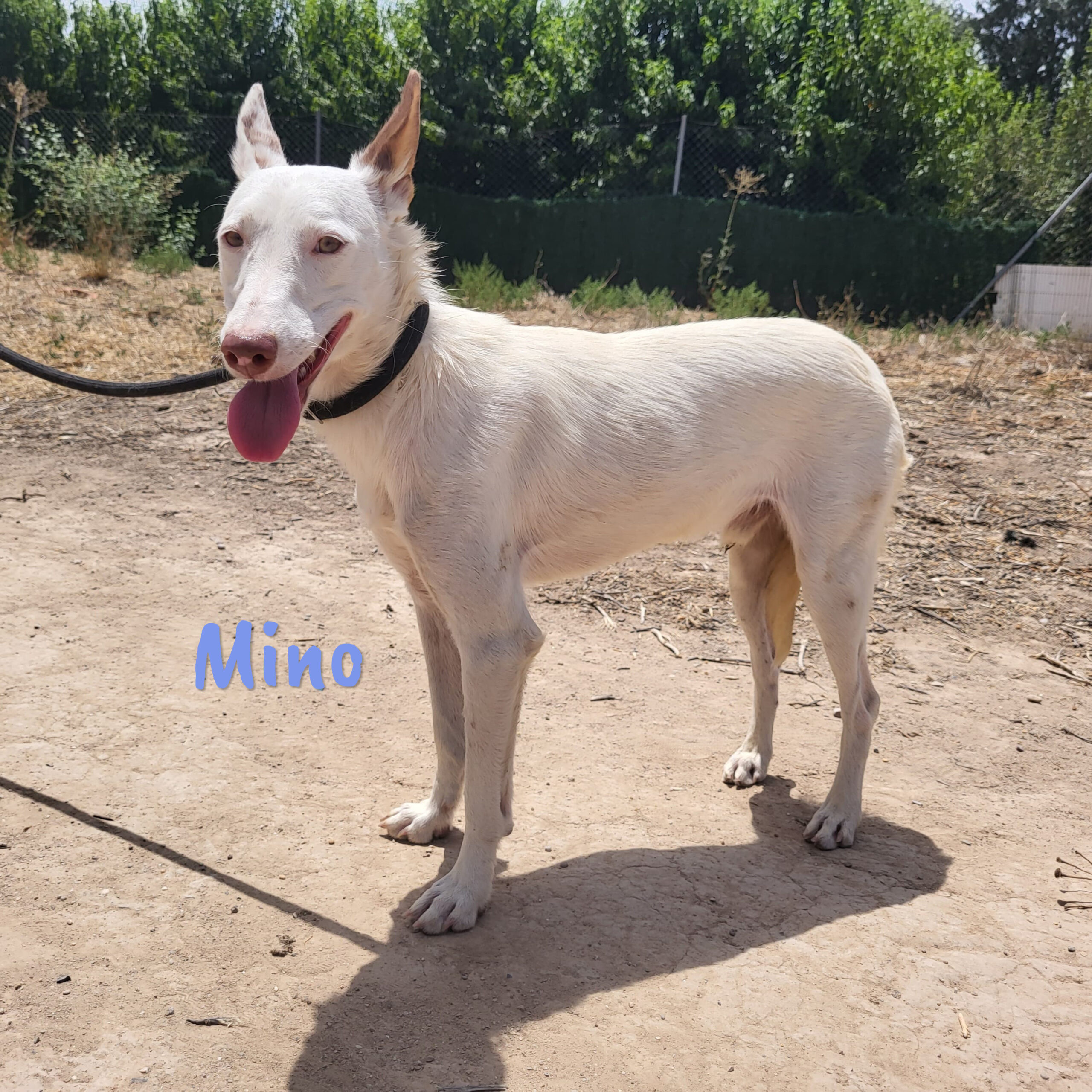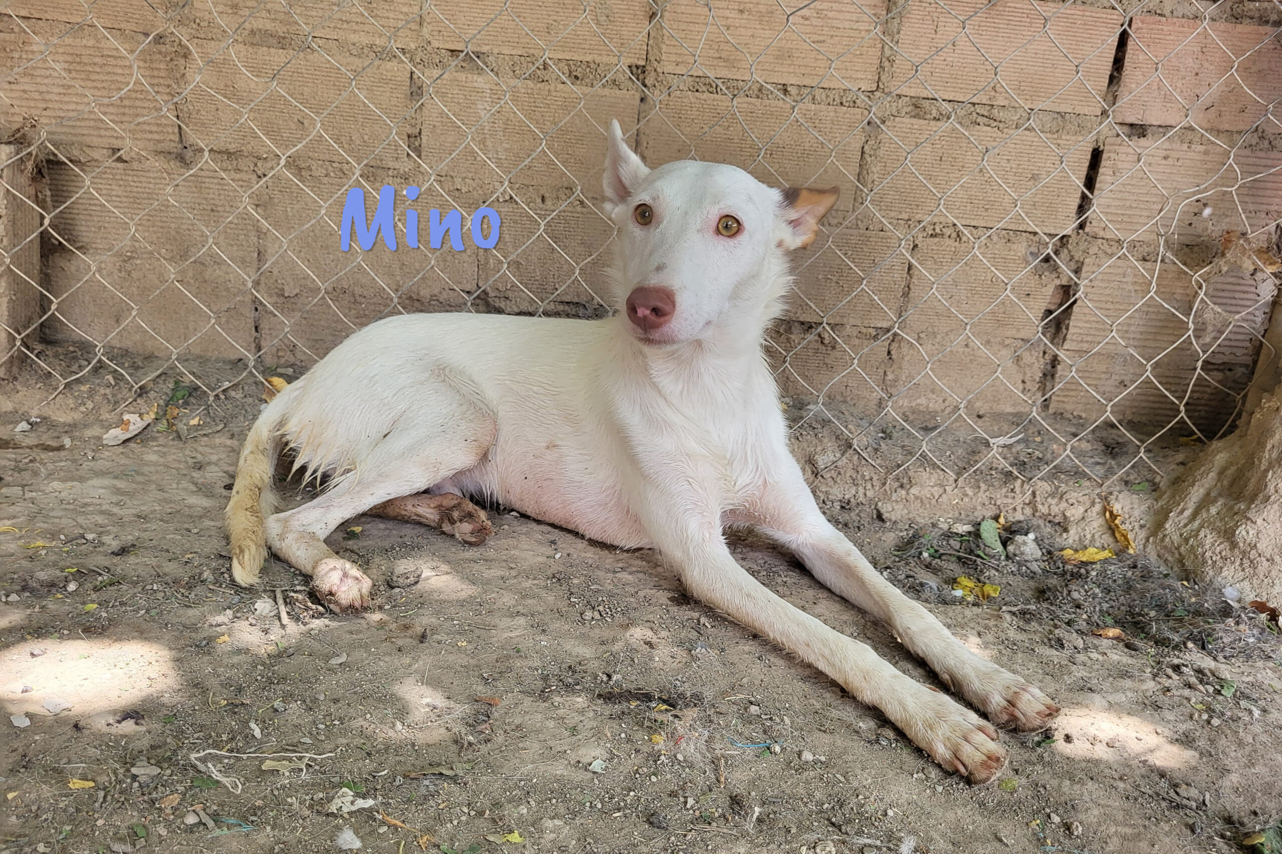 Mino wurde in dem Hof einer Schule gefunden. Er spielte fröhlich mit den Kindern und so entschied der Schuldirektor, nicht die Perrera, sondern Alicia anzurufen. Mino ist ein eher ruhiger und verschmuster Hund, der sich mit allen gut versteht.