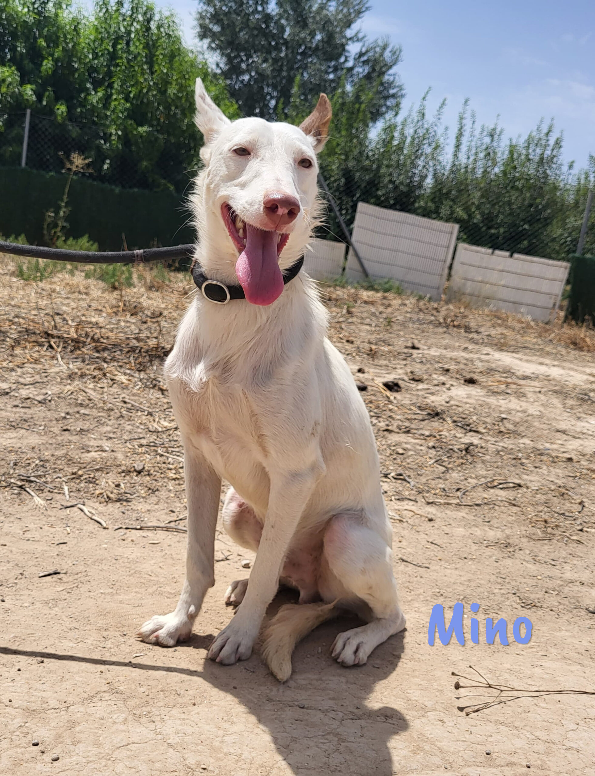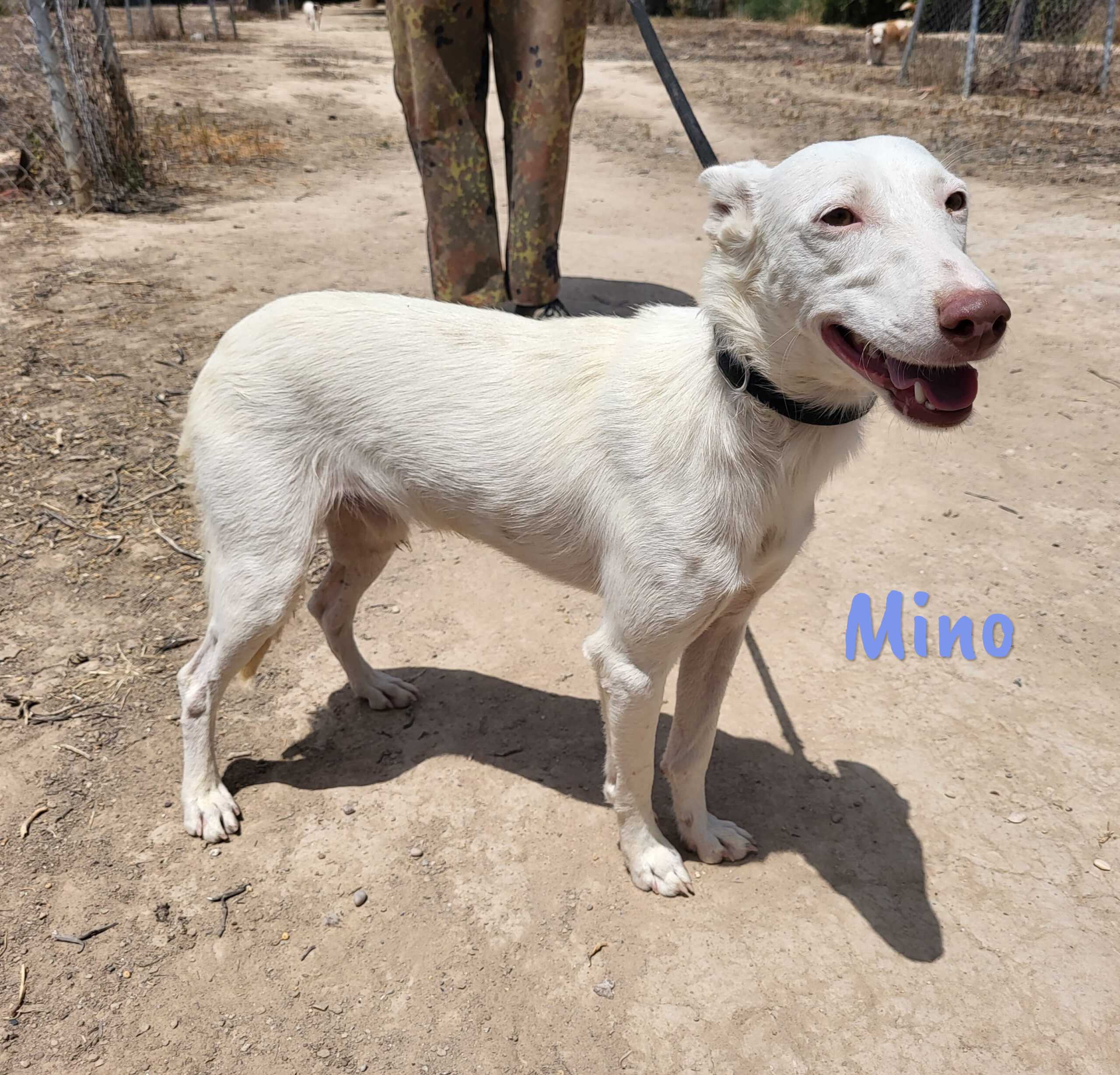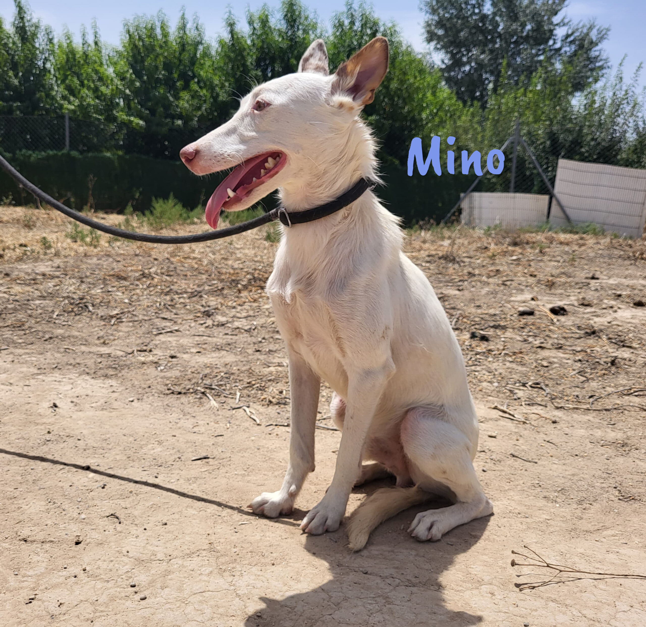 Mino wurde in dem Hof einer Schule gefunden. Er spielte fröhlich mit den Kindern und so entschied der Schuldirektor, nicht die Perrera, sondern Alicia anzurufen. Mino ist ein eher ruhiger und verschmuster Hund, der sich mit allen gut versteht.