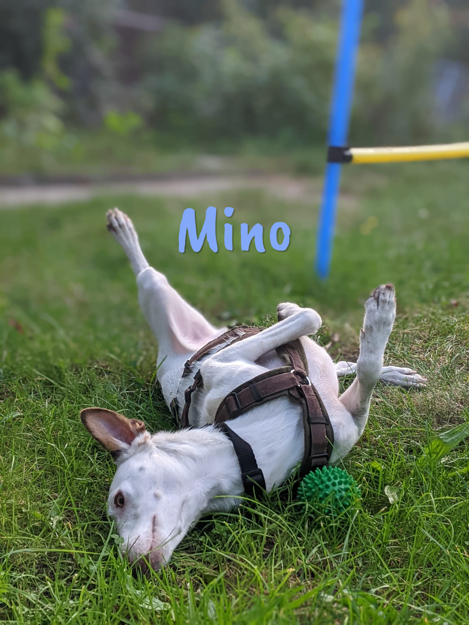 Beim Spaziergang läuft er problemlos mit und passt sich dem Tempo an. Gemeinsame Läufe machen ihm Freude. Die Nähe zu Menschen schätzt er dabei sehr. Auch in städtischen Gegenden fühlt er sich wohl und bewegt sich problemlos im urbanen Umfeld, auch in der Nähe von Bahnen und Autos. Mino liebt die Natur, kann aber auch in der Stadt problemlos spazieren gehen. Er ist bereits in der Lage, Straßenbahnen und S-Bahnen zu nutzen.