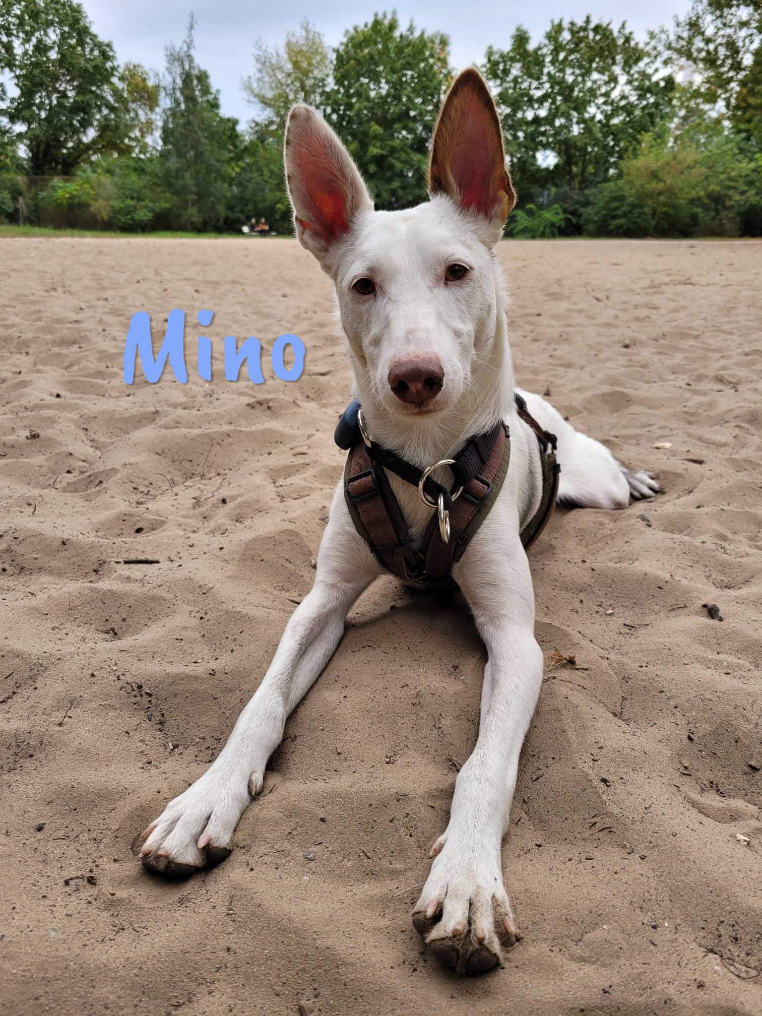 Mino besitzt wunderschöne Augen und ist äußerst sanftmütig. Er schätzt den Kontakt zu Menschen und anderen Hunden gleichermaßen. Er ist gerne in Gesellschaft und genießt seine Streicheleinheiten sichtlich. Wenn man ihn streichelt, zeigt er seine Freude, indem er sich auf den Rücken dreht.