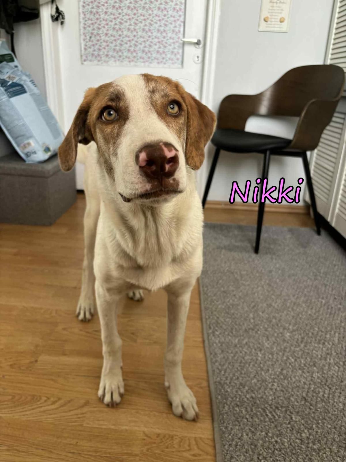 Sie war eines von vielen Geschwistern, die gemeinsam mit ihrer Mutter in einer Stadt umherstreiften – alle voller Flöhe. Sie waren alle verängstigt, außer Nikki. Sie ging vor das Haus einer Tierschützerin und weinte, um hineingelassen zu werden. So nahm die Frau sie auf.