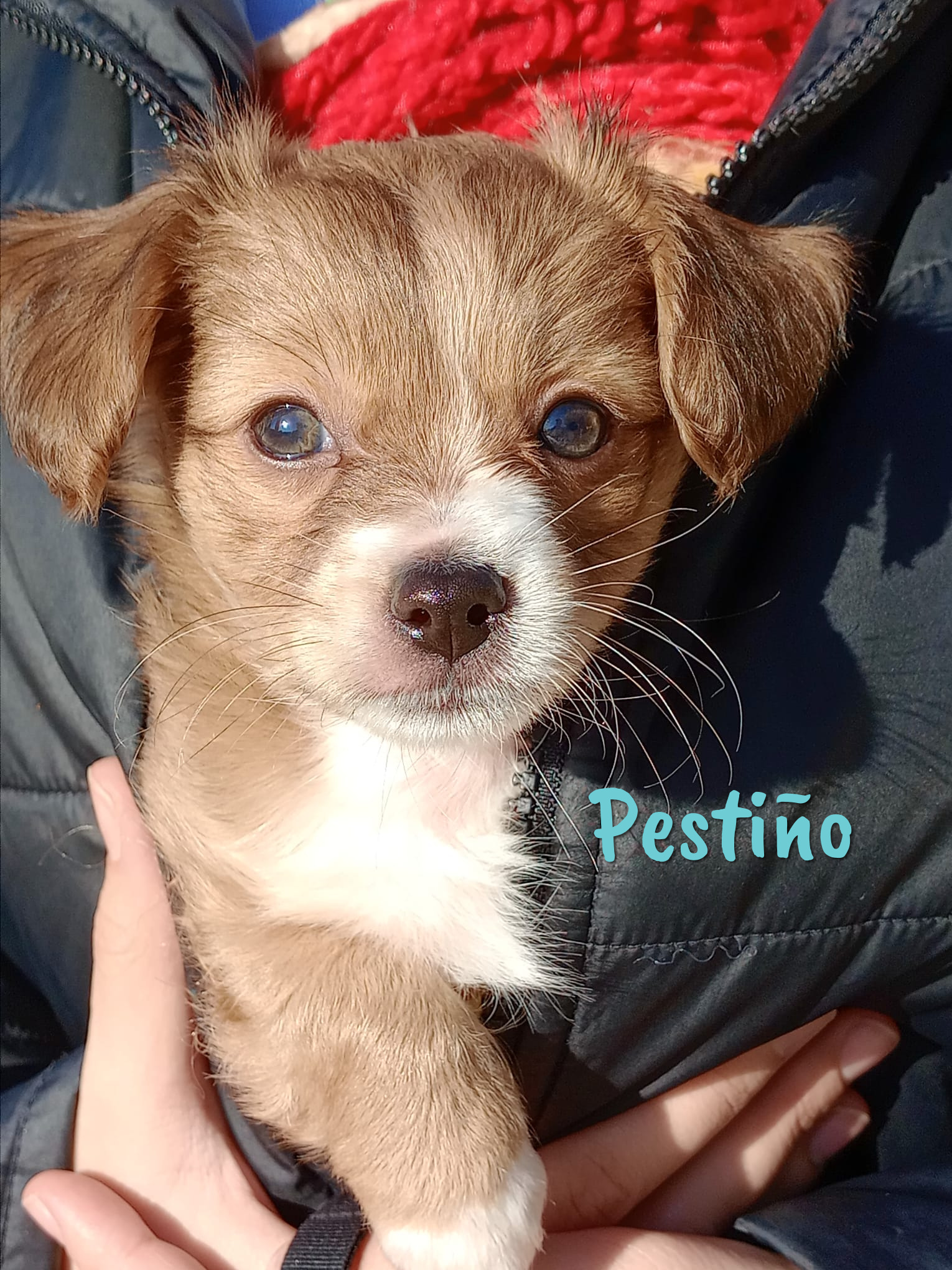 Pestiño wurde von einem Straßenverkäufer einfach zum Verkauf angeboten. Alberto sah ihn und nahm ihn in seine Obhut. Pestiño, der sicherlich nicht allzu groß wird, lebt im Moment auf einer Pflegestelle und ist ein verschmuster, verspielter Welpe, der das Leben kennen lernen will. Wir wünschen uns für ihn verantwortungsbewusste, liebevolle Menschen, die dem Kleinen ein gutes und sicheres Zuhause bieten können.