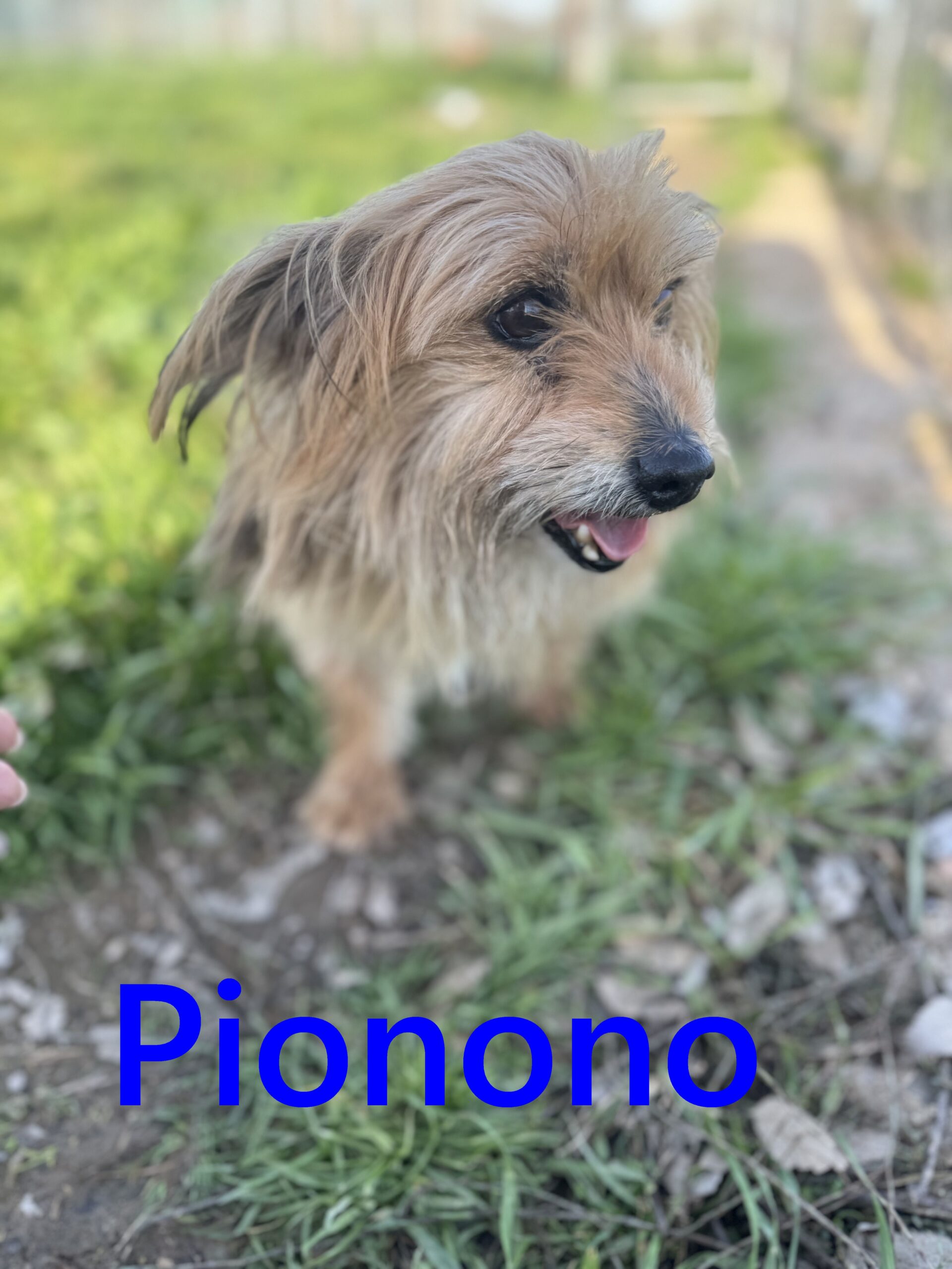 Ausgesetzt in einem Sumpfgebiet in der Sierra de Córdoba, zusammen mit einem weiteren kleinen Hund. Sehr wahrscheinlich wurden die beiden bewusst dort zurückgelassen – vielleicht in der Hoffnung, jemand würde sie finden. Der andere Hund durfte inzwischen in sein Zuhause reisen. Pionono blieb zurück.