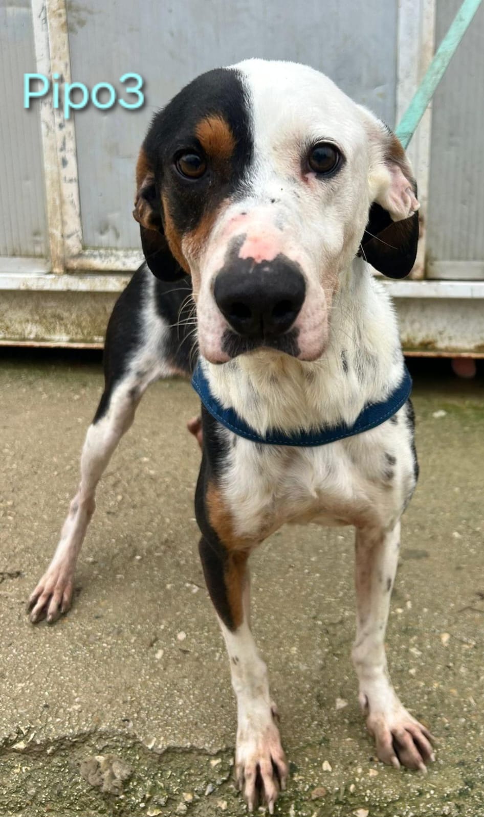 Geschichte: Pipo3 wurde von einem Paar am Straßenrand in einem nahegelegenen Dorf gefunden. Dort saß er, kaum noch bewegungsfähig, völlig erschöpft und bis auf die Knochen abgemagert. Er wurde sofort zum Tierarzt gebracht, wo man mit Entsetzen und großer Empörung feststellte, dass die Kette um seinen Hals bereits in die Haut eingewachsen war. Wir wissen nicht, wem er gehörte – nur, dass er nie gepflegt oder geliebt wurde. Sein abgemagerter Körper und das eingewachsene Halsband erzählen von Hunger und davon, dass niemand bemerkt hat, wie es immer enger wurde.