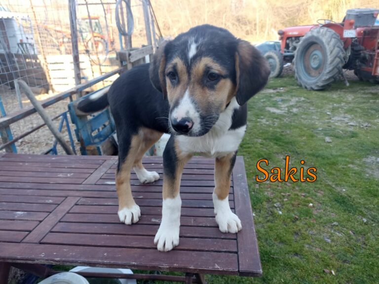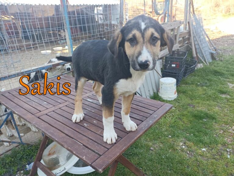 Sakis und seine Geschwister (Sisi, Sonia, Sugar, Semi, Soto und Sifi) wurden zusammen mit ihrer Mutter Nicole, die auch zur Vermittlung steht, auf einer sehr befahrenen Straße aufgefunden. Sie wären früher oder später sicherlich von einem Auto erfasst worden.