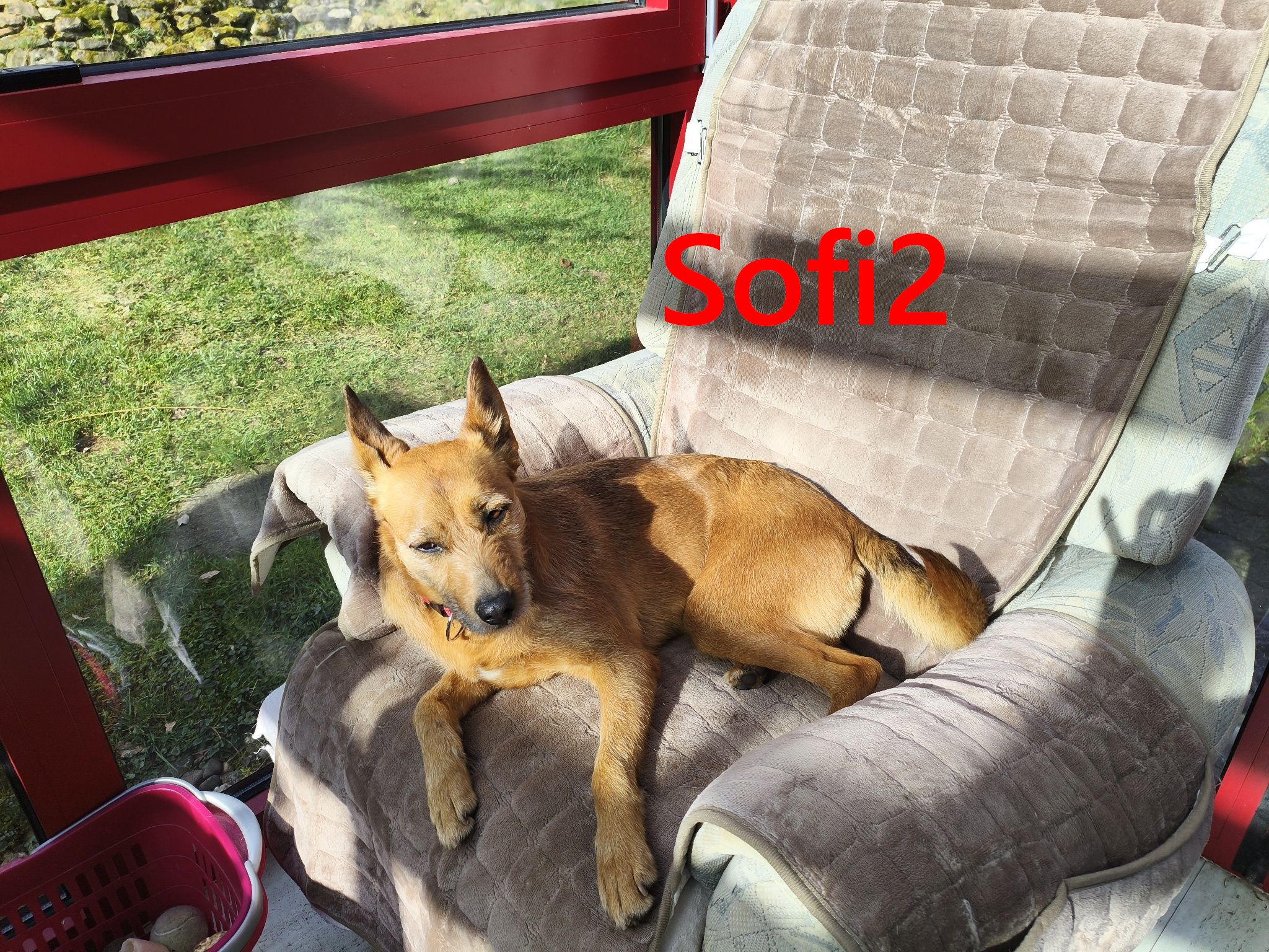Sofi2 hatte bisher kein schönes Leben und das obwohl sie aus einer Familie kommt. Leider gab es da noch einen zweiten Hund, einen Mastin, über den die Familie keine Kontrolle hatte, der aber im Haus bleiben sollte um es zu bewachen. Leider ist er mehrfach auf Sofi2 los und hat sie gebissen. Deshalb beschlossen die Menschen, daß Sofi2 im Zwinger leben muss. Ohne Familienanschluss und immer unter Angst, wieder gebissen zu werden, wenn man sich dort raus begibt.