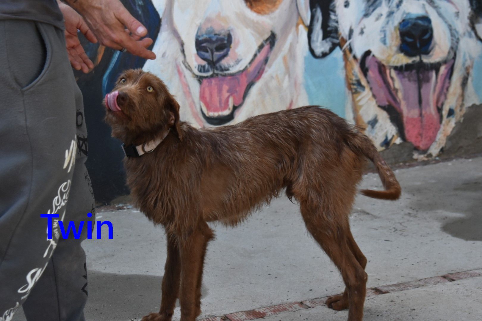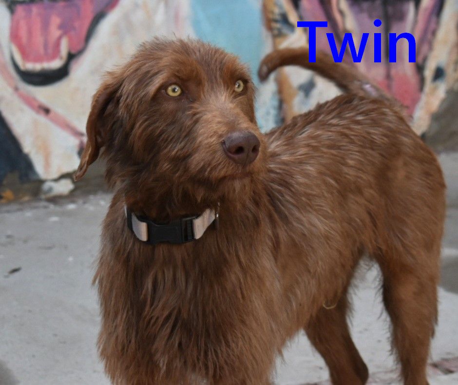 Twin reist geimpft, gechipt, kastriert, entwurmt, auf Mittelmeerkrankheiten getestet und mit europäischem Heimtierausweis aus.