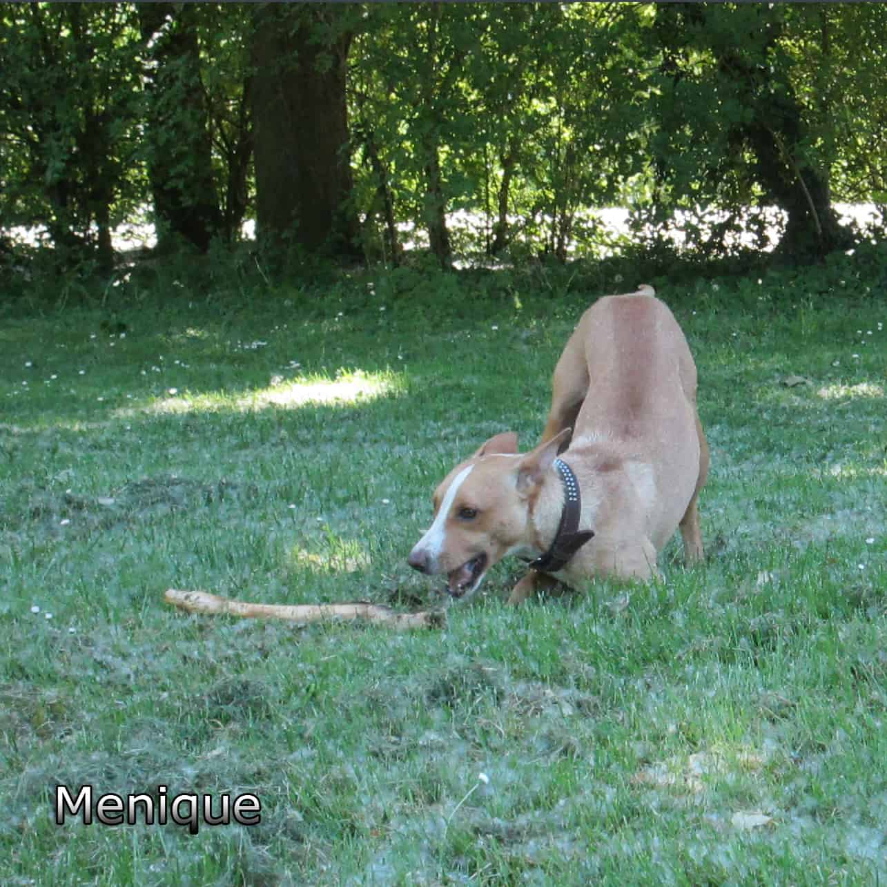 Da Menique, anders als er behauptet, nicht klein ist, kann seine Reaktion erschrecken (wobei er in jeder Situation sehr gut abrufbar ist). Aus diesem Grund und obwohl er sehr gehorsam ist, finden wir, dass er nicht für Anfänger geeignet ist. Er kann anderseits sowohl als Einzel- als auch als Zweithund vermittelt werden und mit größeren Kindern (ab 10) wäre er sehr glücklich.