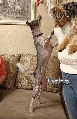 Tisha selbst ist ein ganz lustiger und lebensfroher kleiner Hundekerl. Er hat viel Energie und nutzt diese auch.
