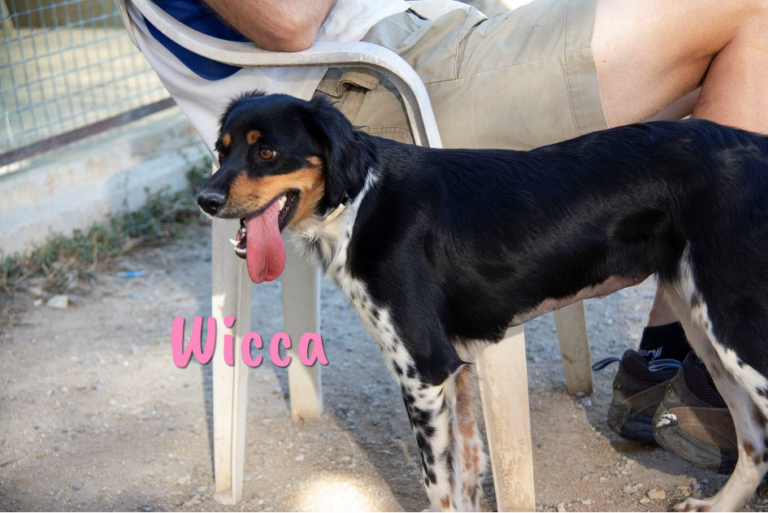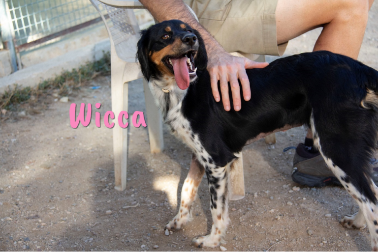 Wicca ist eine aktive und sehr verspielte Hündin, die liebevoll mit den freiwilligen Helfern vor Ort umgeht. Mit ihren Artgenossen versteht sie sich bestens. Sie lebt mit einem Rüden und einem Weibchen zusammen im Zwinger und geht ohne Probleme mit der großen Hunde-Gruppe in den Auslauf. Sie hat ein sehr freundliches Wesen.