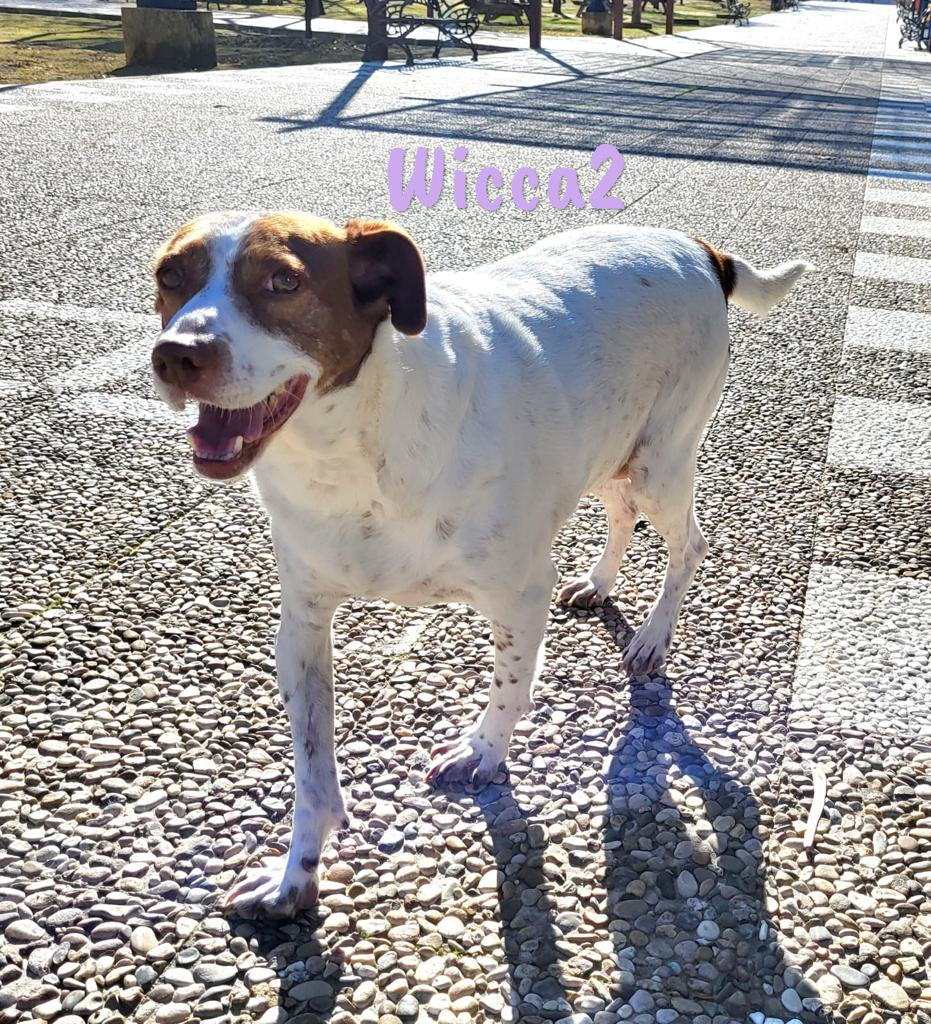 Wicca2 ist eine fröhliche, soziale und gelehrige Hündin, die am liebsten in der Sonne liegt, mit den anderen Hunden im Shelter spielt und liebend gern spazieren geht. Trotz eines vermuteten Jagdhundanteils zeigt Wicca2 bisher keine Anzeichen von Jagdtrieb und bleibt auf Spaziergängen immer abrufbar. Für unseren hübschen Sonnenschein wünschen wir uns eine Familie oder ein Paar, das gern unterwegs ist und sie verwöhnt und lieb hat.